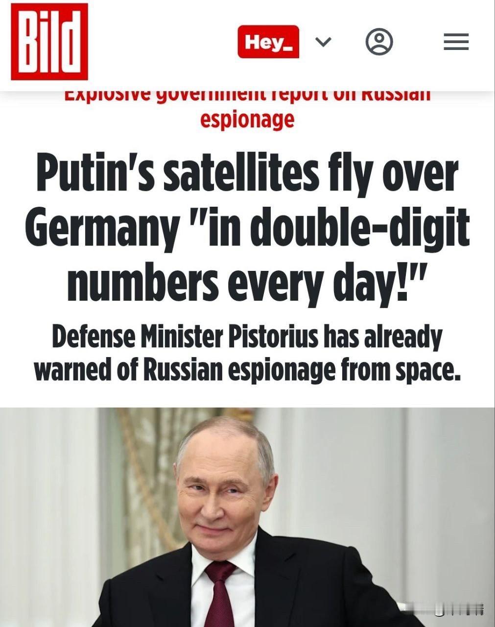 德国《图片报》煞有介事地警告说“普京的卫星每天都飞越德国”,这简直太可笑了。事实上,各国的卫星每天都飞越德国:美国的、中国的、欧盟的、英国的,甚至包括商业卫星。 这就是轨道运行的原理。它不会绕着巴伐利亚转圈。