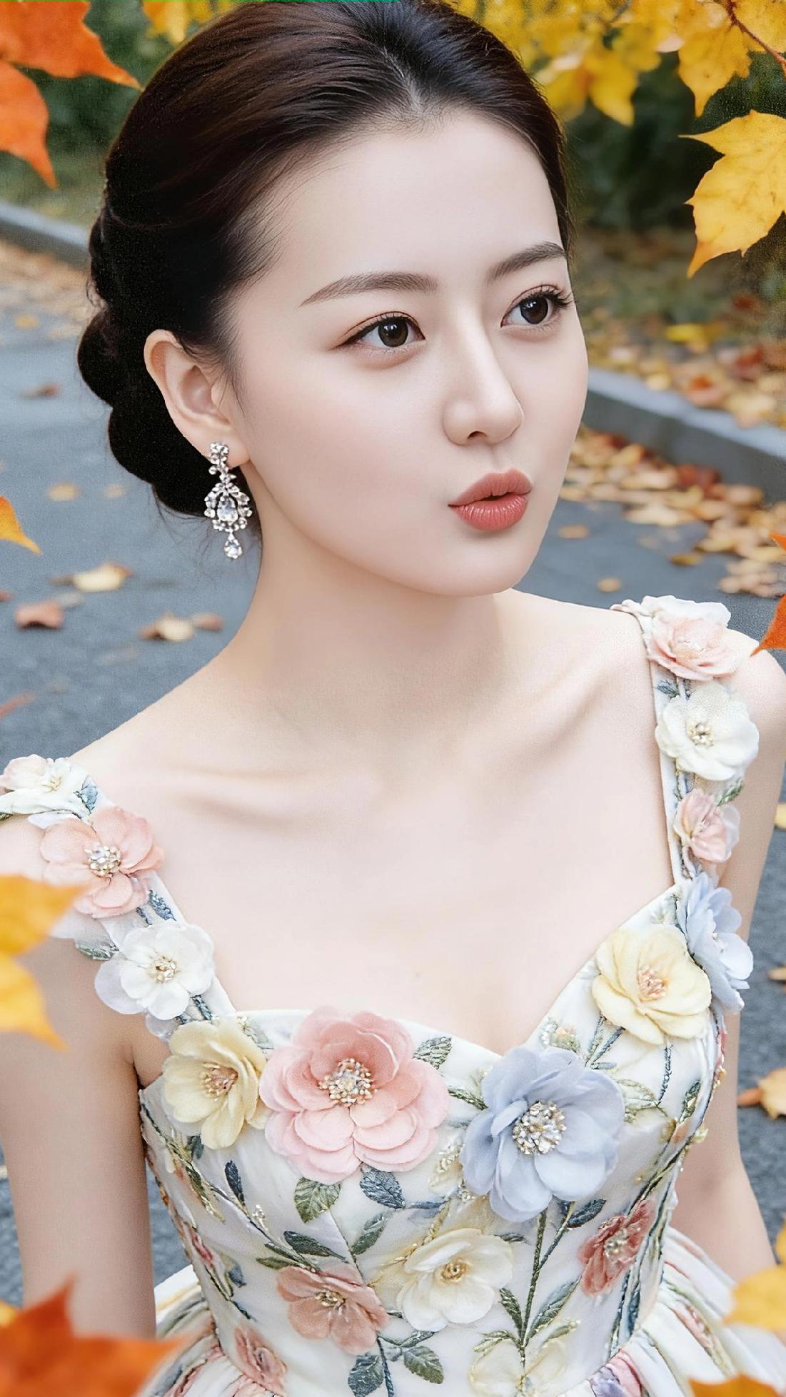 秋日暖阳下,优雅花裙与自然融为一体,静谧美好。