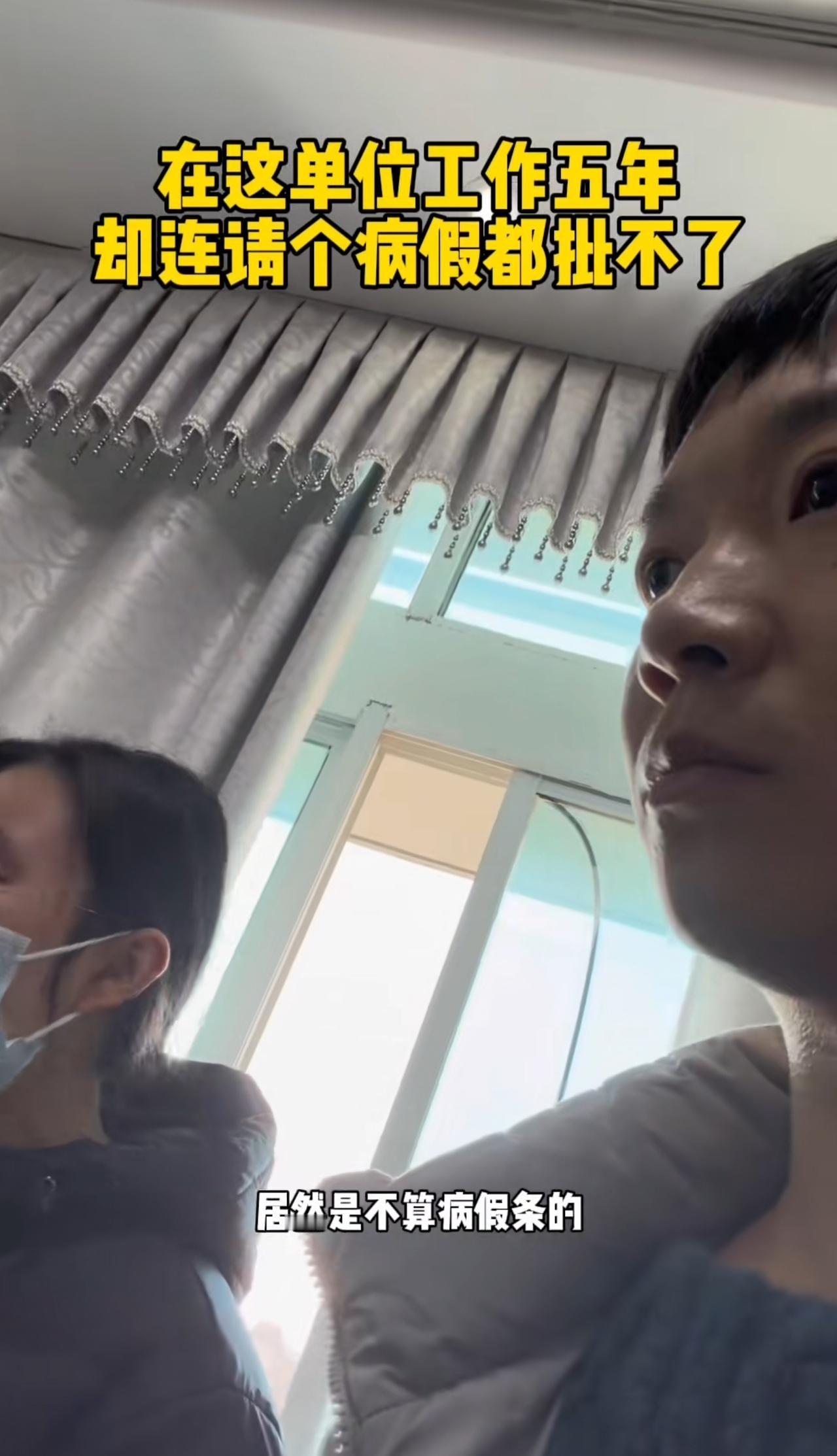 丰城中医院女护士患肺癌请病假被拒绝! 这名女护士就职于丰城中医院的ICU科室,据该女子描述,她们科室是上两个月白班,就要上一个月的夜班,自己之前在上夜班的时候,多次感觉到不舒服,胸口憋的难受,心慌,喘不过来气。 刚开始女子以为不是什么大事,可能是自己最近没有睡好觉的原因,但是一次检查却让她的心情一下子跌落到了谷底,因为检查结果显示,自己已经确诊肺癌。 于是女子向医院领导提出请一个月的病假,医院这次也同意了。但是一个月之后,女子再次前往医院复查之后,主治医师给她出具了休息14天的门诊疾病证明书,于是该女子拿着这份证明向医院申请再休一个月的病假,但是医院领导以未提供需要住院治疗的证明,只同意给女子开事假的假条,而不同意为其开病假的假条。 最后协商未果,女子同意开具请事假的证明,表示这一个月的工资不要了,五险一金也可以自己去交。 医院院长也同意了这个决定,但是到了顶头上司护理部那里,却又遭到了刁难,最后女子心里难受,当场哭了起来。 其实仔细想想,当护士的确实也不容易,自己生病了,做了那么大的手术,连医生都建议她再休息14天,但是到了自己所在的医院和部门面前,却被这样对待,任谁心里也不会好受的。
