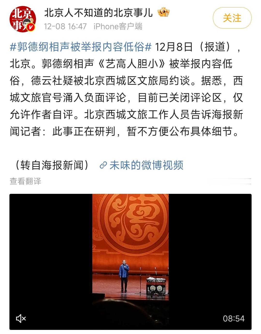 郭德纲压力应该不小。 之前媒体爆料,郭德纲因为相声段子低俗被举报了,甚至被北京相关部门约谈。 好像约谈的结果就是以后段子里尽量不要出现低俗的内容,像屎尿屁这种,大概率就不让说了。 而在这个节骨眼上,德云社和郭德纲又开始筹办钢丝节的事。 钢丝节对于郭德纲来说肯定是意义重大,对于粉丝来说也是特别重要。 不知道在钢丝节的舞台上,郭德纲会用什么段子献给他的粉丝们。 离开了屎尿屁和下三路,离开了于谦的父亲母亲,郭德纲能讲出好段子来吗?
