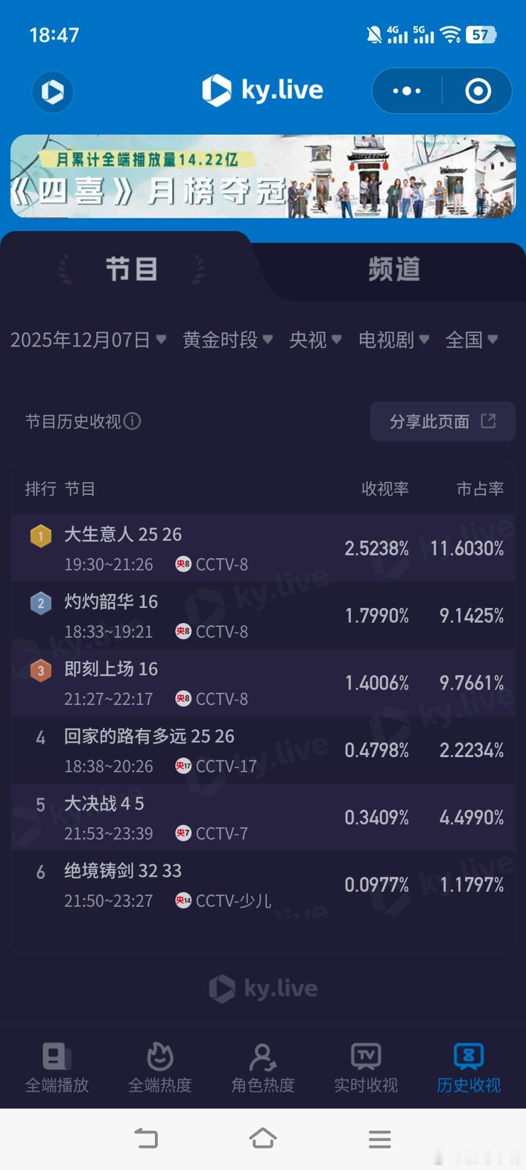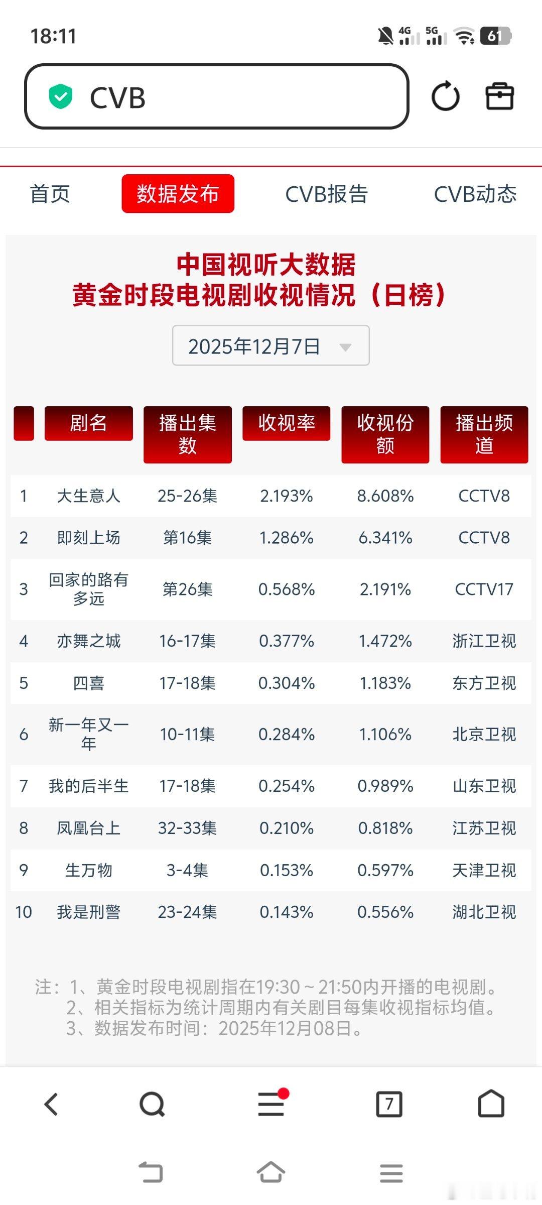 谁教陈晓这样撒娇的12月7日cvb收视日报大生意人2.193,酷云2.5238,系数0.869即刻上场1.286,酷云1.4006,系数0.918亦舞之城0.377,酷云0.4085,系数0.923四喜 0.304,酷云0.2799,系数1.086新一年又一年0.284,系数0.2979,系数0.953凤凰台上0.210,酷云0.2840,系数0.739