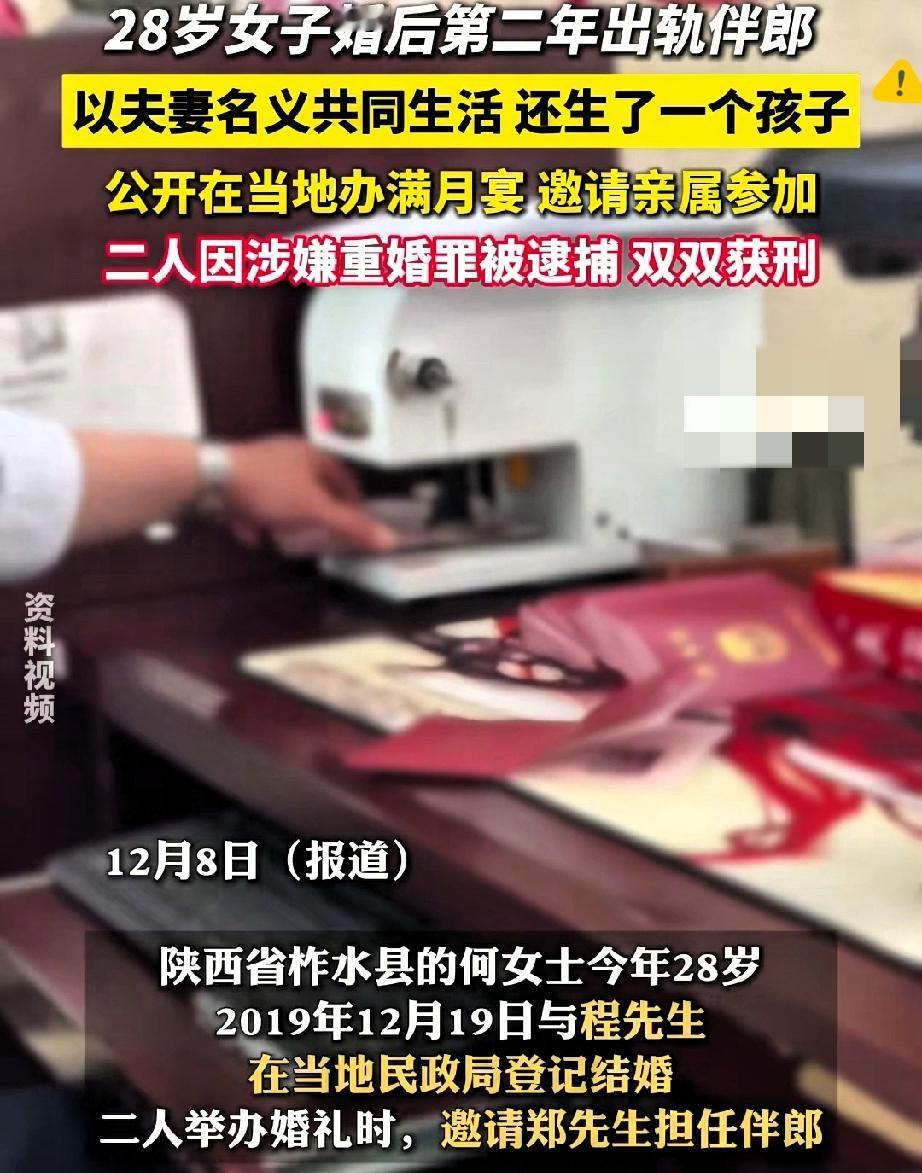 见过离谱的没见过这么离谱的! 新娘出轨伴郎生娃不算啥,双方亲戚组团给私生子办满月宴,这操作直接把三观按在地上摩擦! 陕西这起重婚案真的刷新认知,新郎在外打工养家,老婆却和自己的伴郎以夫妻名义同居生子,医院签字、日常供养样样齐全,最后还大张旗鼓办满月酒,亲戚们居然都来捧场道贺。 这哪里是丑事,分明被他们当成了“喜事”办,完全没把合法丈夫放在眼里,更无视了婚姻的底线和法律的红线。 其实这事儿最可怕的不是出轨本身,而是双方家庭对背叛的纵容,把不道德当成理所当然,把违法当成真爱无敌。 婚姻的核心是忠诚,更是责任,不是一句“孤独”就能成为突破底线的借口,也不是亲戚捧场就能洗白的荒唐。 最终两人因重婚罪获刑也算罪有应得,但这场闹剧留下的教训太深刻。 你觉得是情感缺失可以理解,还是这种突破底线的行为根本不可原谅?