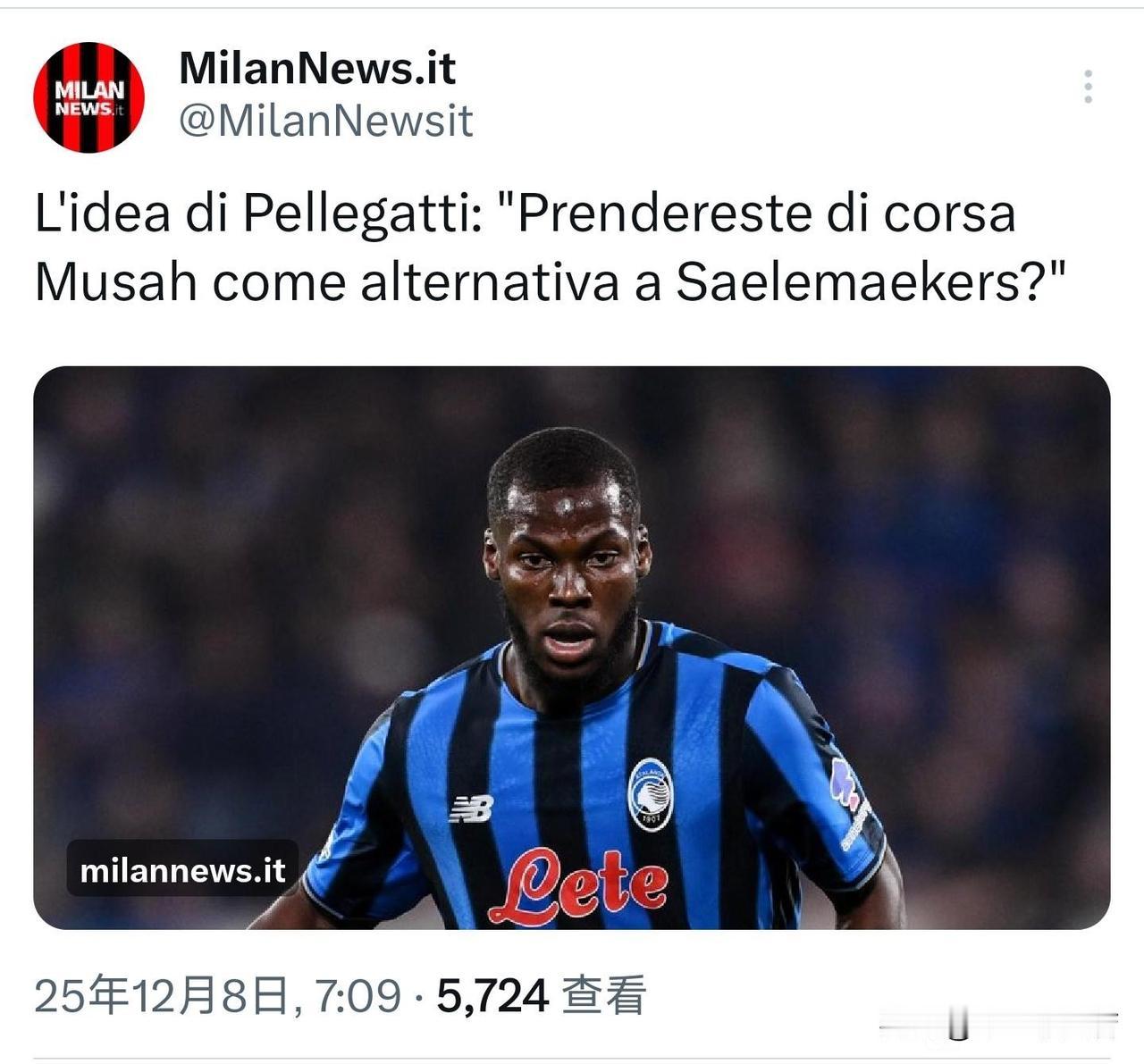 米兰冬季窗口可能会选择召回穆萨。米兰夏季窗口最后时刻把穆萨送走就令人难以理解,不明白这笔交易到底啥意思,如果是卖了还能理解,租借给竞争对手,还是转会关窗时期,最重要的是萨勒马克尔斯明显没有替补,当时这笔交易就难以理解。 现在召回估计也是无奈之举,毕竟穆萨在亚特兰大连替补都不算,联赛最近都没有出场,要知道亚特兰大阵型也有边翼位,还双线作战,穆萨都捞不到上场时间,说明啥?肯定有亚特兰大不愿意白白替米兰培养球员的原因,但是不是也有穆萨水平确实一般的因素,哪怕穆萨水平能比亚特兰大现在的球员水平高出一些,主教练为了成绩也会给穆萨机会。 现在看来我们冬季窗口肯定是想集中资金好好买中锋了,之前一直说要补充两个位置,这个新闻我当时也发了,阿莱格里要求补充两个位置,右边翼卫需要一名替补,现在召回穆萨意思就是右边翼卫不花钱,那有可能是集中有限资金来补充锋线。