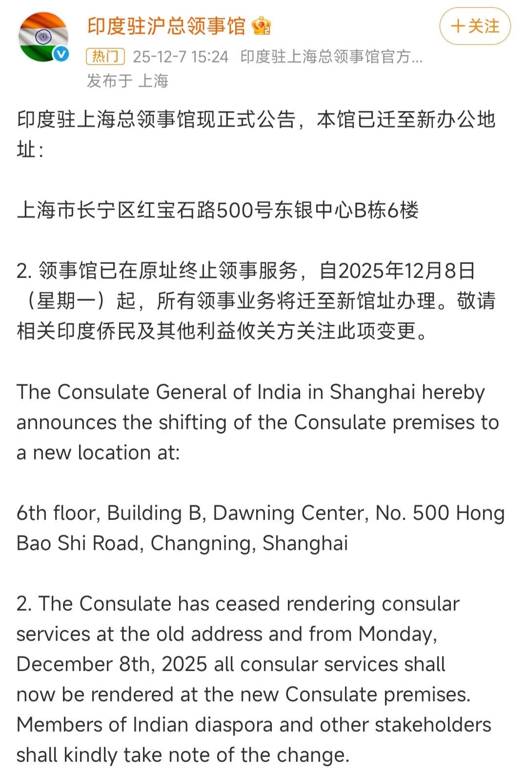 12月8日,印度驻上海总领事馆时隔32年,正式揭幕了新馆址:上海市东银中心B栋6楼。 怕他们在苏州河、黄埔江洗澡的上海人,请在每个下河口,自费打印250张有中英文“禁止下河洗澡,否则罚款5000元”的公告提示语。逮到一个罚一个。 上海的印度人,以后可以过他们的洒红节和排灯节了。 他们如果欠房租了,房主不能让他们欠账,要立马赶走他们!