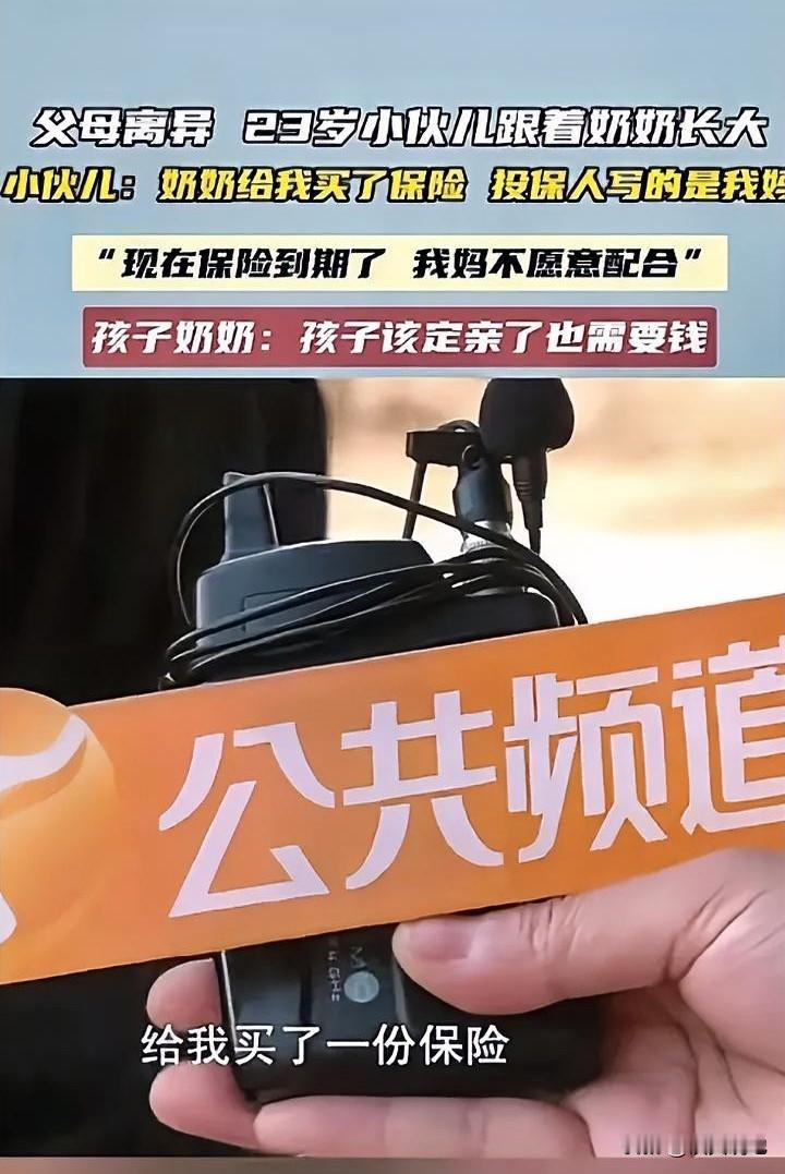 世上真有这样的妈妈吗!河南郑州,23岁男孩从小父母离异,跟着奶奶相依为命,奶奶掏钱给他买的保险,投保人却写着母亲名字。如今保险到期需领钱办婚事,然而,母亲却拒不配合。网友:“3万块的保费当奶的也要占吗?” 23岁男孩父母从小离异,如今爸爸也去世了,奶奶从小把他拉扯这么大,为了有个生活保障,奶奶从小孩子买了份保险,但保单人只能写妈妈的名字。 如今,保单到期了,孙子的年纪也不小了,奶奶还指望这点钱给孩子提个亲,可当她给妈妈打电话说这事时,妈妈却拒不配合。 无奈之下,她找来了调解员,可妈妈依旧不配合,奶奶欲哭无泪。 此事被报道后,引起无数网友感慨。 有的说:“当妈妈的离婚后,是怎么做到对自己的孩子的不管不问,我很难理解。” 也有的说:“世上真有这样的妈妈吗。” 还有的说:“这个妈妈太心狠了,自己孩子都不心疼了。” 奶奶用养老钱给孙子买保险,白发苍苍还操心孙子的婚事,这份心意沉甸甸的。可当妈的连签字都不愿意,让孩子和老人在这头干着急。 我们身边多少老人就是这样,自己舍不得吃穿,却把最后一点积蓄都留给了儿孙。反倒是本该最亲的人,让亲情寒了心。 亲情不该是冰冷的条款,而是危难时伸出的那双手。 希望这位妈妈摸摸良心,别让老人的期待落空,别让孩子最后的依靠也塌了。