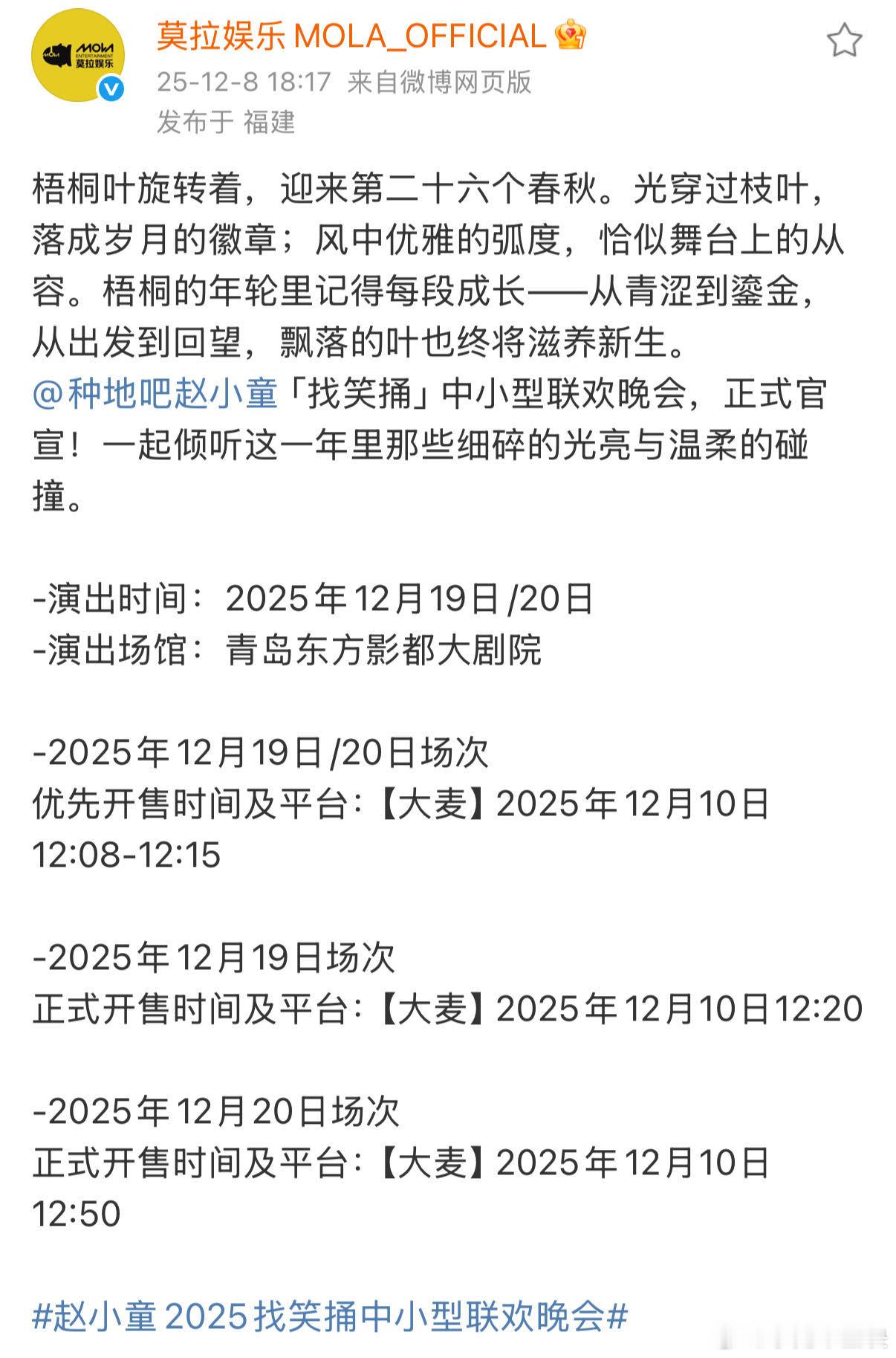 赵小童生日会官宣 期待与你一起见证赵小童生日会上的每个精彩瞬间,一同欢庆她的生日