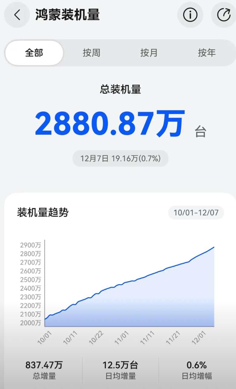 重磅消息!鸿蒙装机量突破2880万!鸿蒙6的终端数量迅猛增长,从1000万到2000万仅用时两个多月,即将突破3000万,按照目前的增长速度,今年有望突破3200万,我们敬请期待一下吧!
