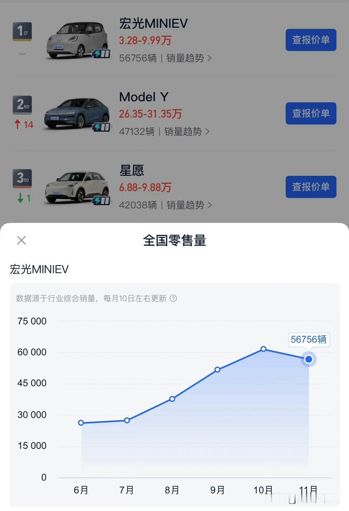 五菱宏光MINI EV已经好几个月霸榜第一了。我一直觉得厂商做调研,没必要找车圈网红KOL。大部分车圈网红消费能力早已远超普通消费者,而且大部分KOL会不会买一款车主要是看有没有合作,根本调研不出真实消费者的需求。找网红做咨询调研,很容易给出错误的判断。 假如你想知道一款售价10万的车消费者会不会买单,就应该去找家庭年收入在10万左右的消费者调研。大部分普通消费者会不会买一款车,还是看价格和实用性[摊手]