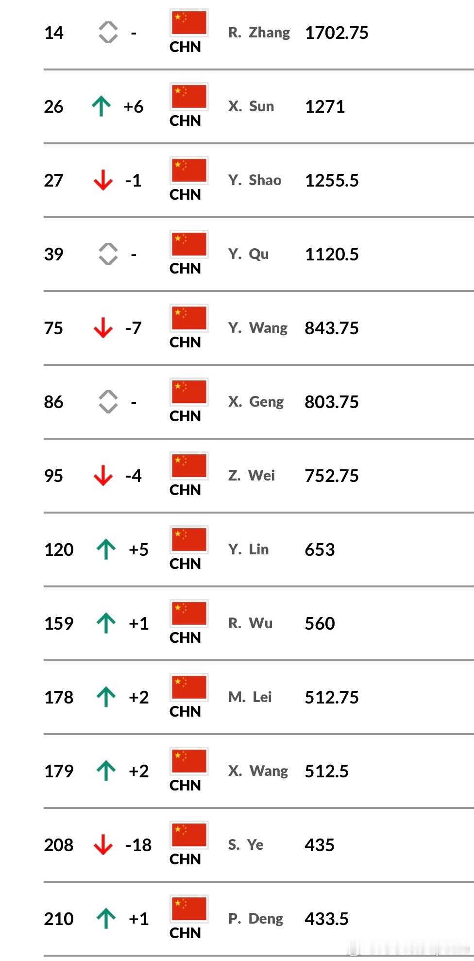 【ITF青少年排名】女子7人Top100,本周最后一周青少年比赛,明年1.5世界排名 2007.1.1-2007.12.31 出生的球员 排名就要被扣除。女单:🇨🇳张瑞恩:14🇨🇳孙心然:26 🇨🇳邵羽杉:27🇨🇳渠依含:39🇨🇳王雨涵:75 🇨🇳耿心乐:86🇨🇳魏彰倩:95🇨🇳林禹君:120🇨🇳吴汝茜:159🇨🇳雷麦洛迪:178🇨🇳王小童:179🇨🇳叶师羽:208🇨🇳邓沛恩:210孙心然 刷新最高排名 来到 26位。2009出生渠依含、 雷麦洛迪、王小童2010出生孙心然、耿心乐、林禹君网球talking大会