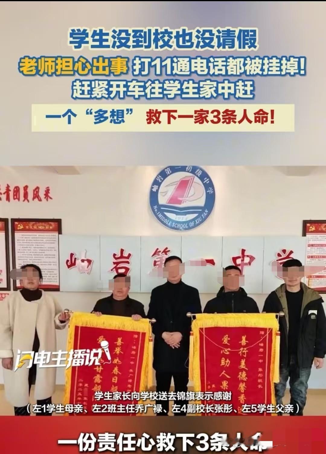 12月7日辽宁有报道,班主任发现孩子没来上课,给家长打了11通电话都被挂断,这让班主任警觉起来,于是和副校长一起开车过去。到了孩子家,见房门紧锁,就直接破窗进去,这时看到孩子爸爸走路摇摇晃晃,立刻意识到可能是一氧化碳中毒。他们一边开窗通风,一边打120求救,最后一家三口幸运获救。事后,孩子父母做了锦旗送到学校感谢两位老师,可两位老师只淡淡地说:“孩子能平安来上课,比啥都强。” 跟你说啊,这事儿真是太悬了,全靠这俩老师心细胆子大。你想啊,孩子没去学校,换作有的老师,可能就先琢磨“是不是家里有事忘了说”,等中午再问问。但这位老师不,打了11个电话都没人接,换谁不得有点毛躁?他倒好,直接觉得不对劲,拉着副校长就往人家里赶,这股子认真劲儿,真是救了命了。 到了家门口,门还锁得死死的,俩人也没犹豫,直接就把窗户砸了。当时哪还顾得上玻璃碎了心疼啊,一门心思就想知道里面人咋样了。进去一看孩子爸走路摇摇晃晃的,立马就反应过来是煤气的事儿,这脑子转得是真快。赶紧开窗透气,接着打120,一步都没耽误。你知道不,一氧化碳这东西贼吓人,悄没声儿的就能把人撂倒,晚个几分钟,后果真不敢想。 后来家长送锦旗感谢,老师说那话,听着普通,可实在。“孩子能平安来上课,比啥都强”,这说明在他们心里,学生的安全比啥都重要。现在总有人说老师这不好那不好,可真到关键时候,能这么豁出去帮孩子的,不还是这些天天围着学生转的老师嘛。 说真的,这事儿也给咱提了个醒,冬天用煤用气的,可得多上点心。还有啊,老师给家长打电话,能接就赶紧接,别嫌麻烦,有时候那电话,可能就是条救命线呢。 各位读者你们怎么看?欢迎在评论区讨论。