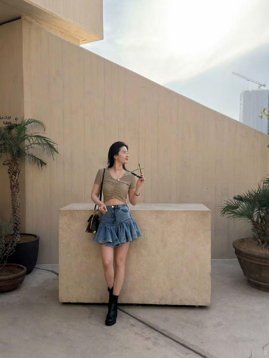 刘亦菲露脐牛仔短裙刘亦菲松弛感穿搭刘亦菲太美了
