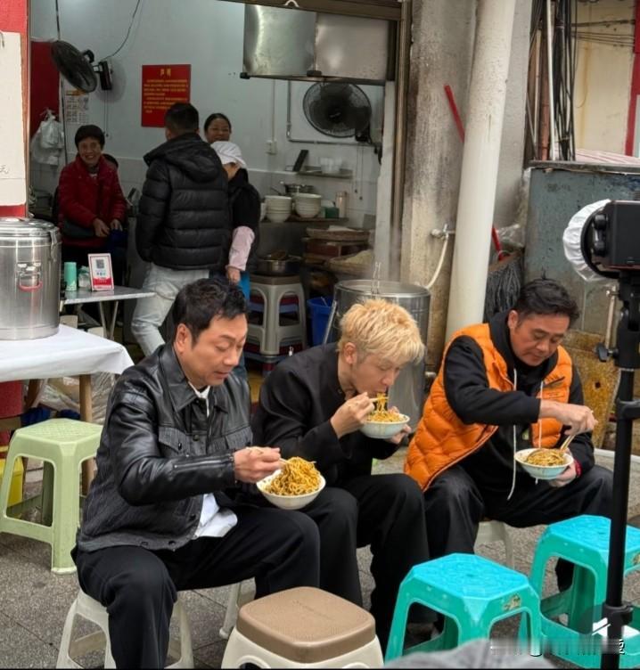 万万没想到,男演员陈浩民已经56岁了,打扮还是如此时髦,看上去还是如此帅气,果然法拉利老了,还是法拉利。 近日,陈浩民现身四川宜宾吃当地特色燃面,只见他染着金色头发,发型看上去格外时髦,穿着打扮也非常时尚,脸型看上去和年轻时别无二致,帅气依旧。 只见他坐在塑料椅子上,把塑料凳当作桌子来用餐,大口吃面,还瞪眼睛上脸,一点也不注意个人形象,为了直播他真的豁出去了。