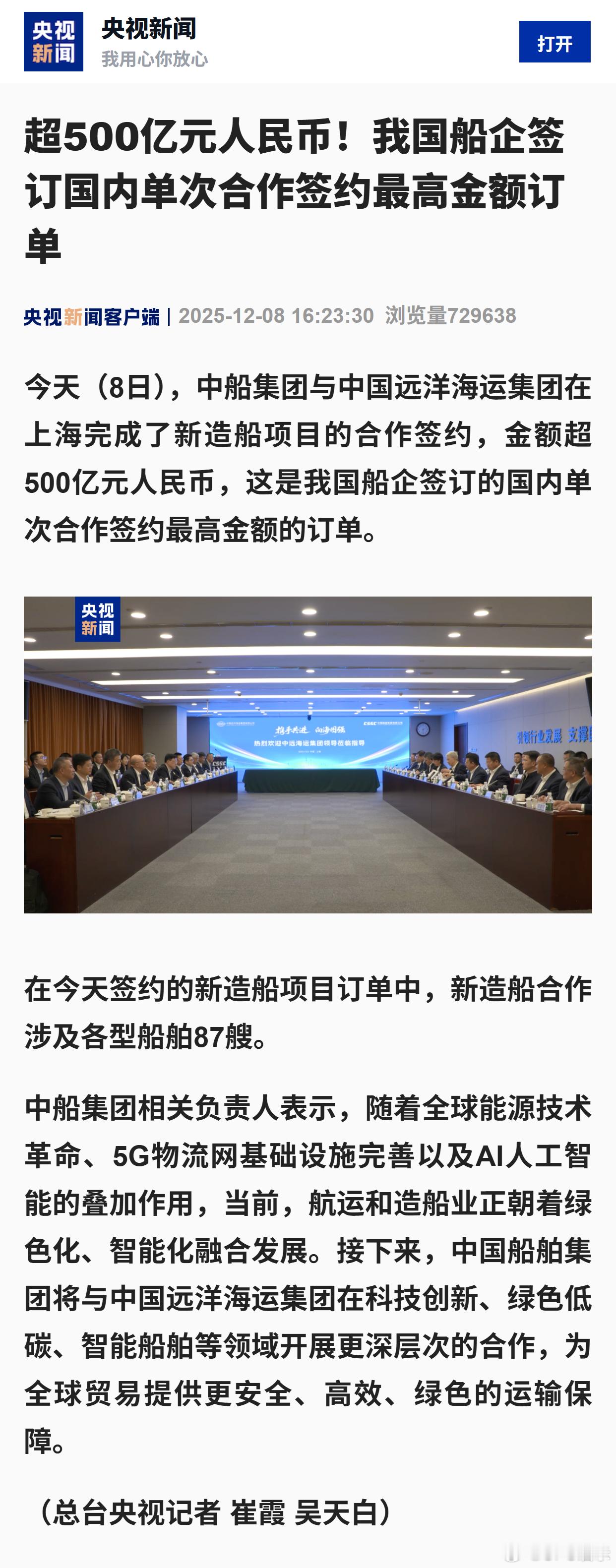 超500亿元人民币!我国船企签订国内单次合作签约最高金额订单