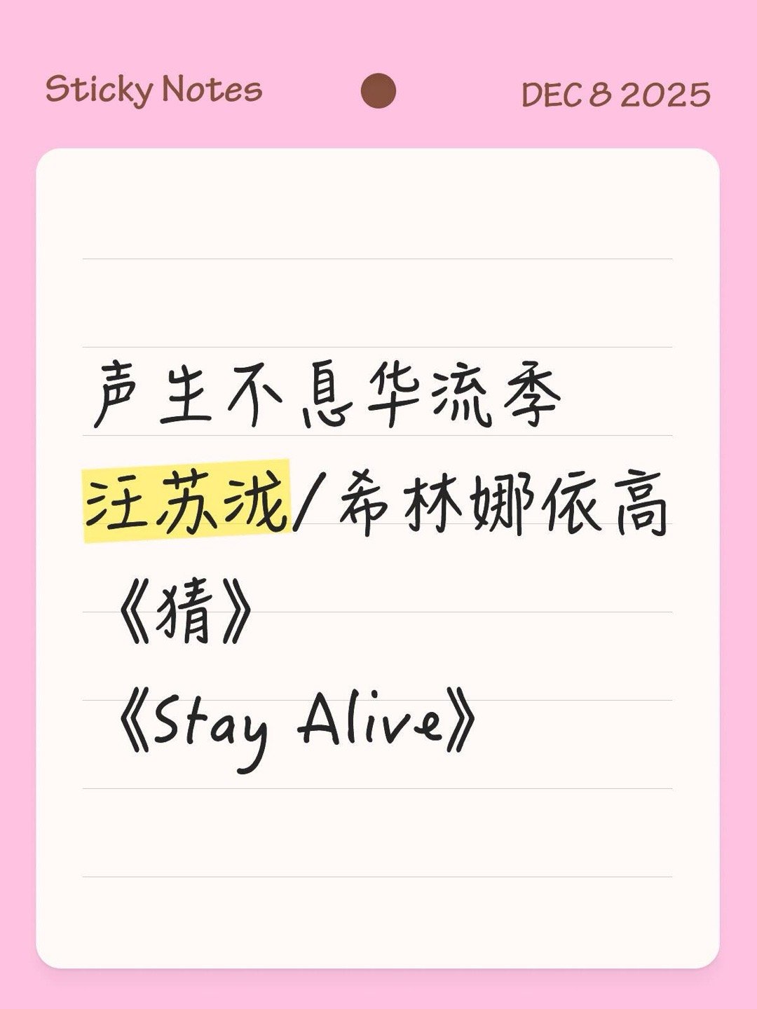 声生不息华流季·汪苏泷希林娜依高✅《猜》由汪苏泷作词作曲希林娜依高原唱歌曲《Stay Alive》原唱:闫泽欢