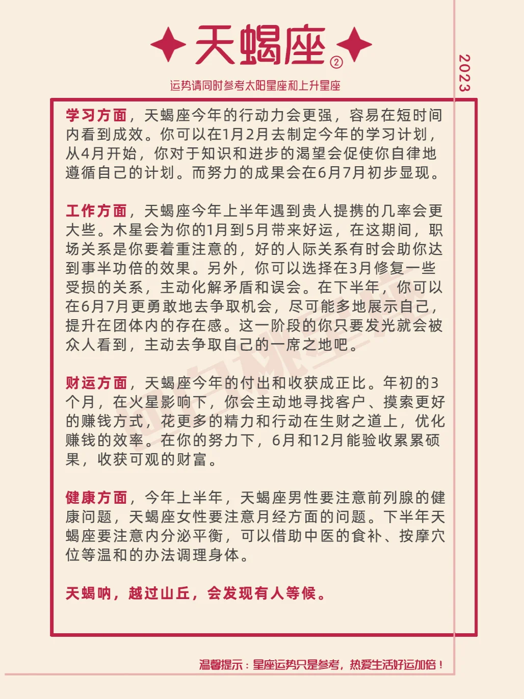 『白桃星座』天蝎座2023年运