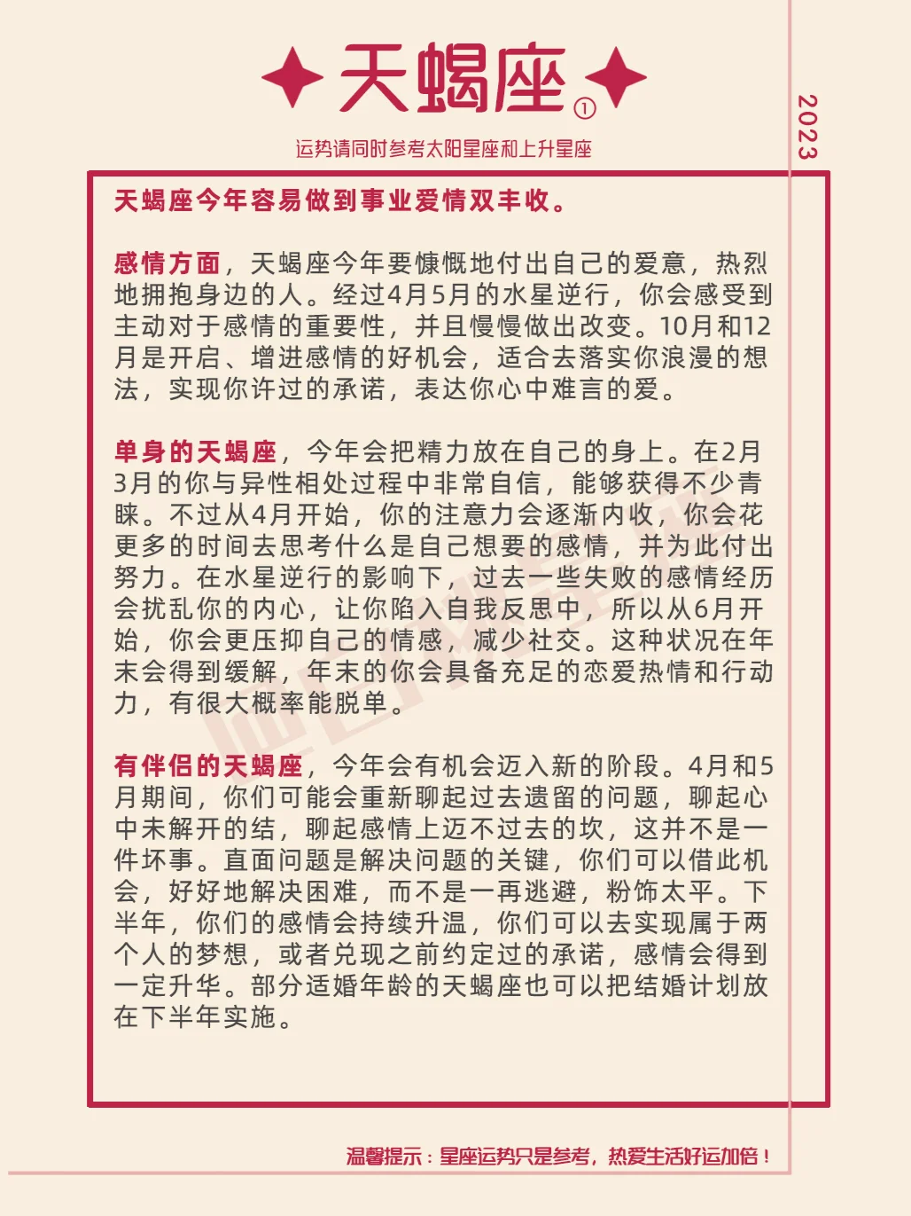 『白桃星座』白羊座2023年运