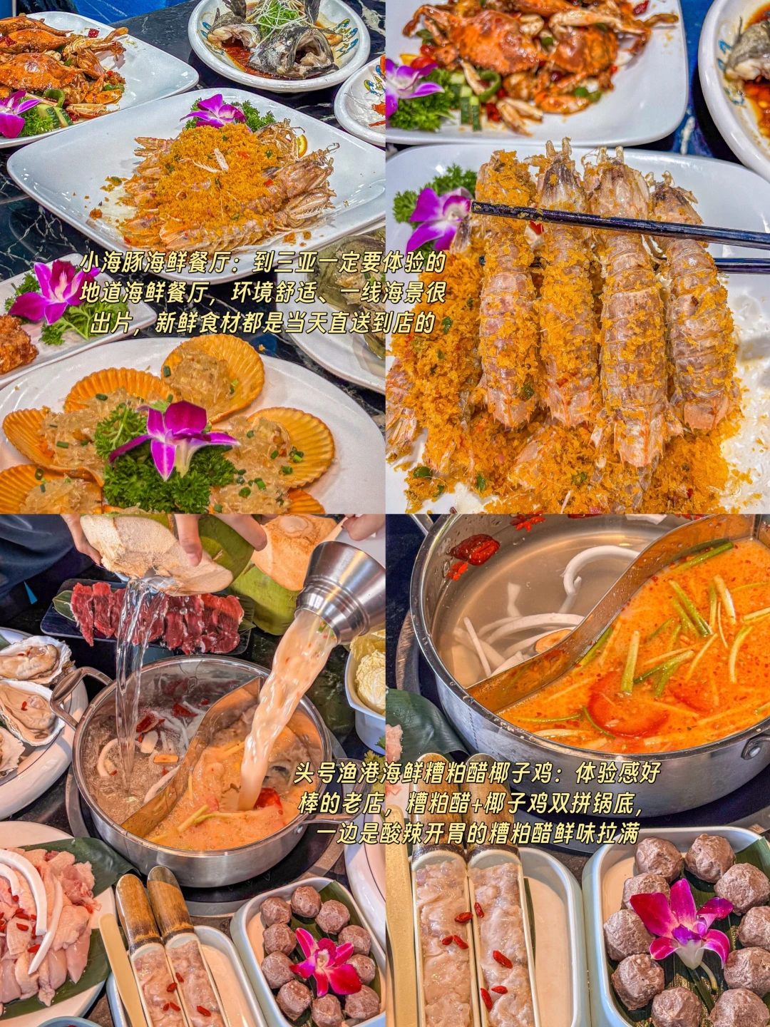 🙌小海豚海鲜餐厅:到三亚一定要体验的地道海鲜餐厅,环境舒适、一线海景很出片,新鲜食材都是当天直送到店的,鲜香浓郁的香辣蟹蟹黄满到溢出,椒盐皮皮虾又鲜又嫩!