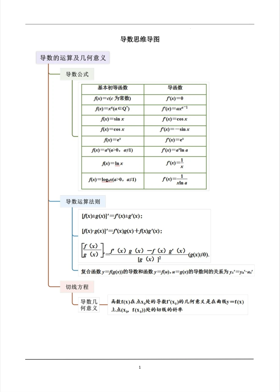 准备照着这个思维导图给学生复习导数,这个框架比较全面~该讲解的讲解,该补充的补充~