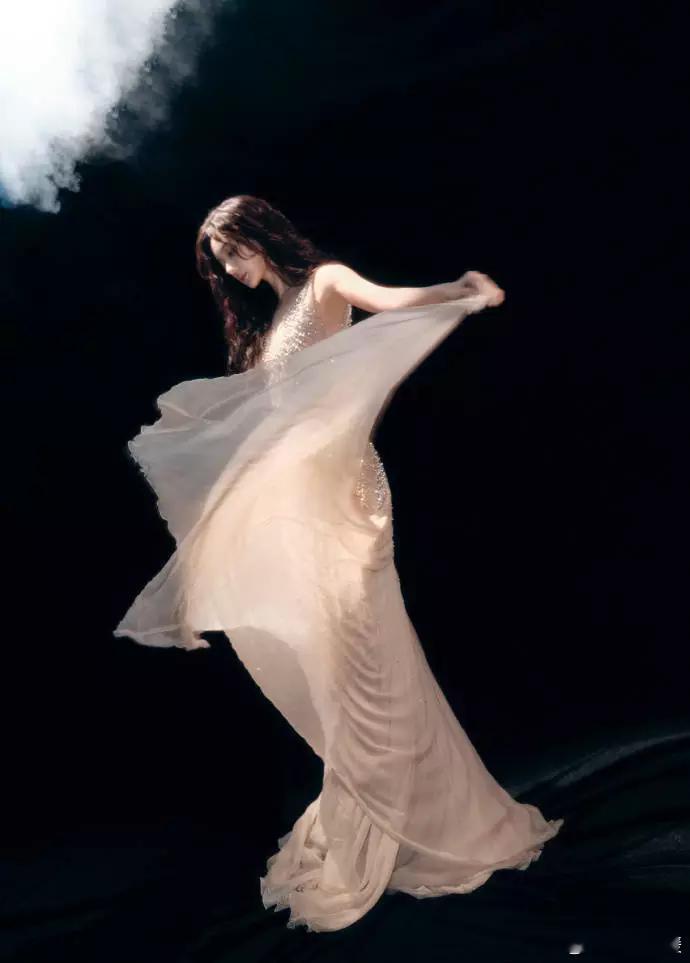 文亦娱乐李一桐穿肉色薄纱裙点缀钻石 微微歪头眼神勾人