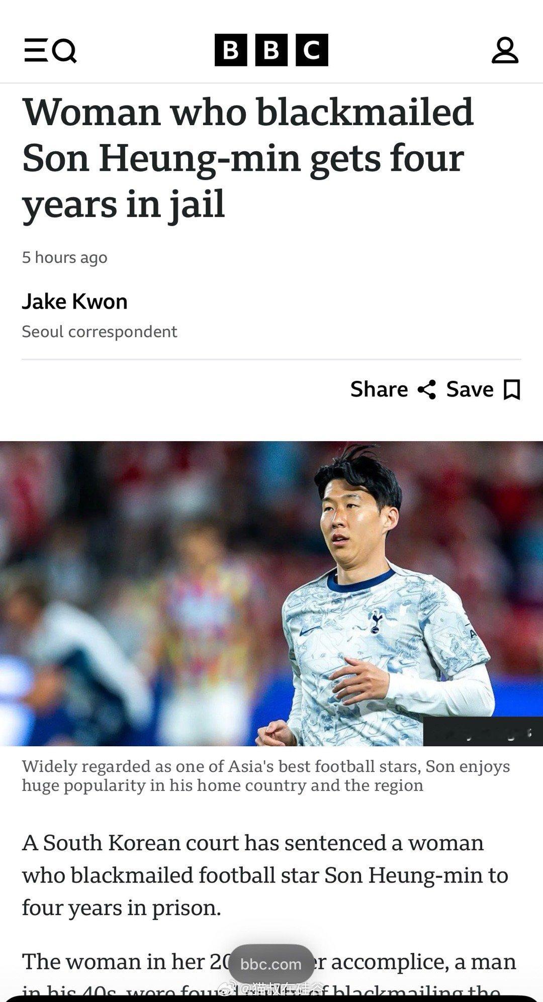 勒索孙兴慜20万美元,女子被判四年这名20多岁的女子与其40多岁的同伙被判有罪,他们共谋谎称女子怀有孙兴慜的孩子,对这位韩国国家队队长实施敲诈勒索。首尔一家地区法院审理查明,该女子去年联系孙兴慜,声称自己怀了他的孩子,但实际上她根本不确定是否属实。她向孙兴慜先后勒索了3亿韩元(约20万美元/15.3万英镑),并威胁说如果不给钱就公开此事。据报道,她把这笔钱全部花在了奢侈品和名牌商品上。检察官周一在法庭上表示:“被告坚称这笔钱是‘补偿金’,把自己包装成受害者,但她的说法与事实严重不符。”检方指控她“精心策划了整起犯罪”。女子的同伙曾15次威胁孙兴慜以索要钱款,被判处两年有期徒刑(尝试敲诈罪)。法官表示,两名被告利用了孙兴慜的名人身份实施犯罪,而案件曝光后,孙兴慜显然遭受了“强烈的精神痛苦”。今年两人再次索要钱款时,孙兴慜终于报警。