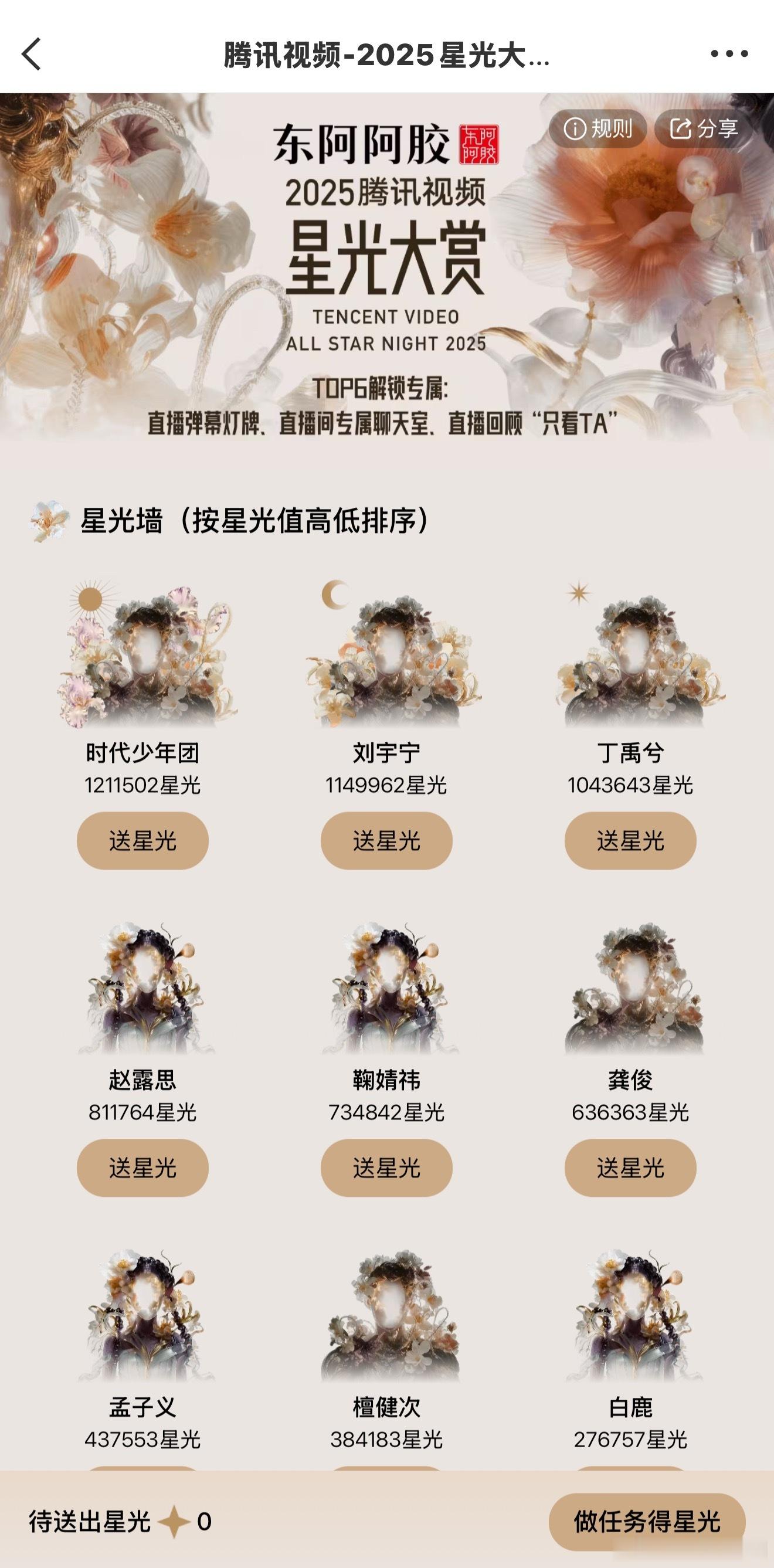 星光大赏投票目前前三分别是:时代少年团、刘宇宁、丁禹兮