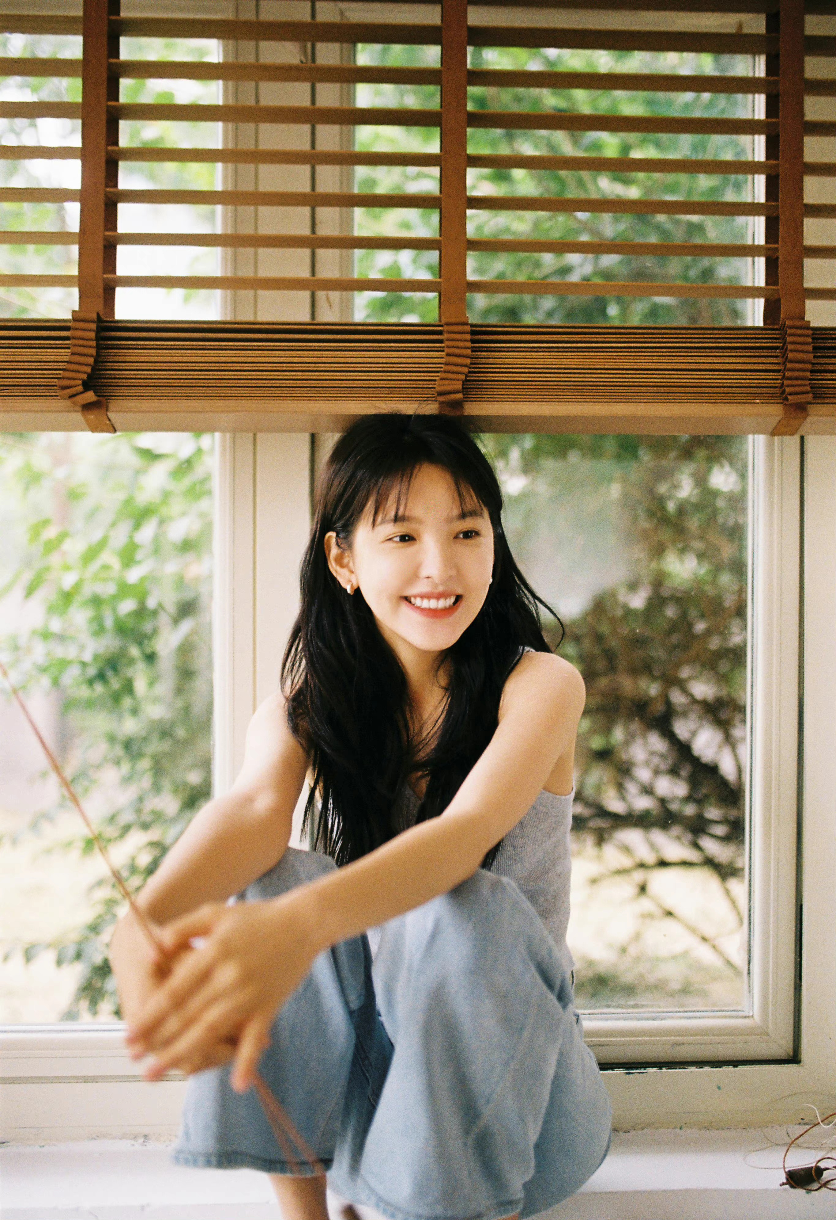 白鹿私服穿搭壁纸:背心牛仔,清甜怡人。白鹿