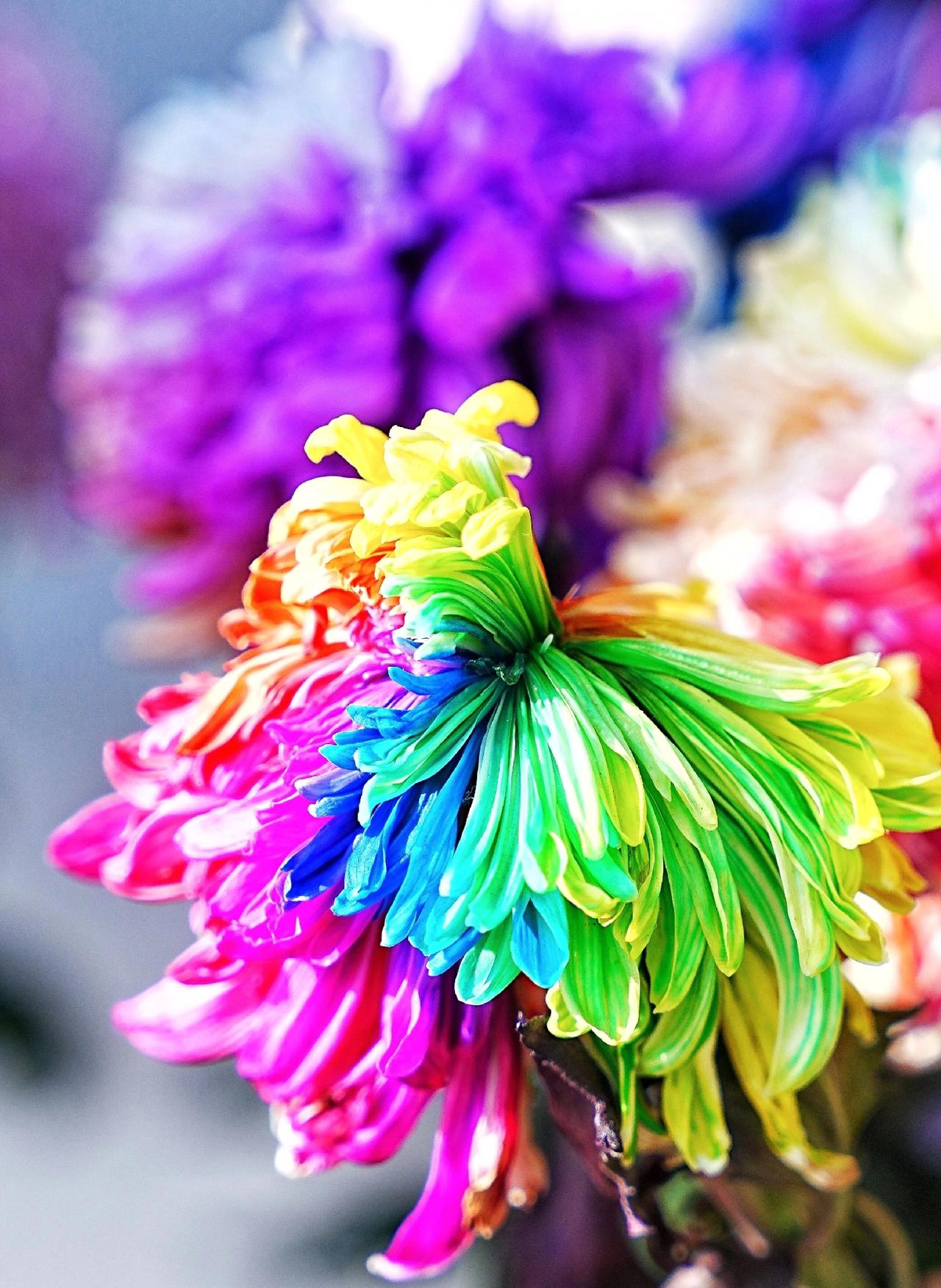 晒图笔记大赛彩虹有红橙黄绿红青蓝紫七色光环。没想到菊也有七色,在阳光下绽放出流动的虹彩。中心嫩绿的花瓣如新芽初绽,向外渐变为明亮的鹅黄,随后晕染出澄澈的湖蓝与靛青,右侧则泼洒着热烈的橙红与粉紫,仿佛将彩虹的所有色彩都揉进了层层叠叠的花瓣中。每一片细长的花瓣都带着渐变的条纹,边缘微微卷曲,像被阳光吻过的丝绸。背景中,紫色与粉白的花团朦胧成温柔的色块,更衬得这朵主花如燃烧的焰、流动的光。它打破了秋日萧瑟的印象,用极致的绚烂诠释着生命的热烈,宛如大自然在凋零前最后一场盛大的色彩狂欢。