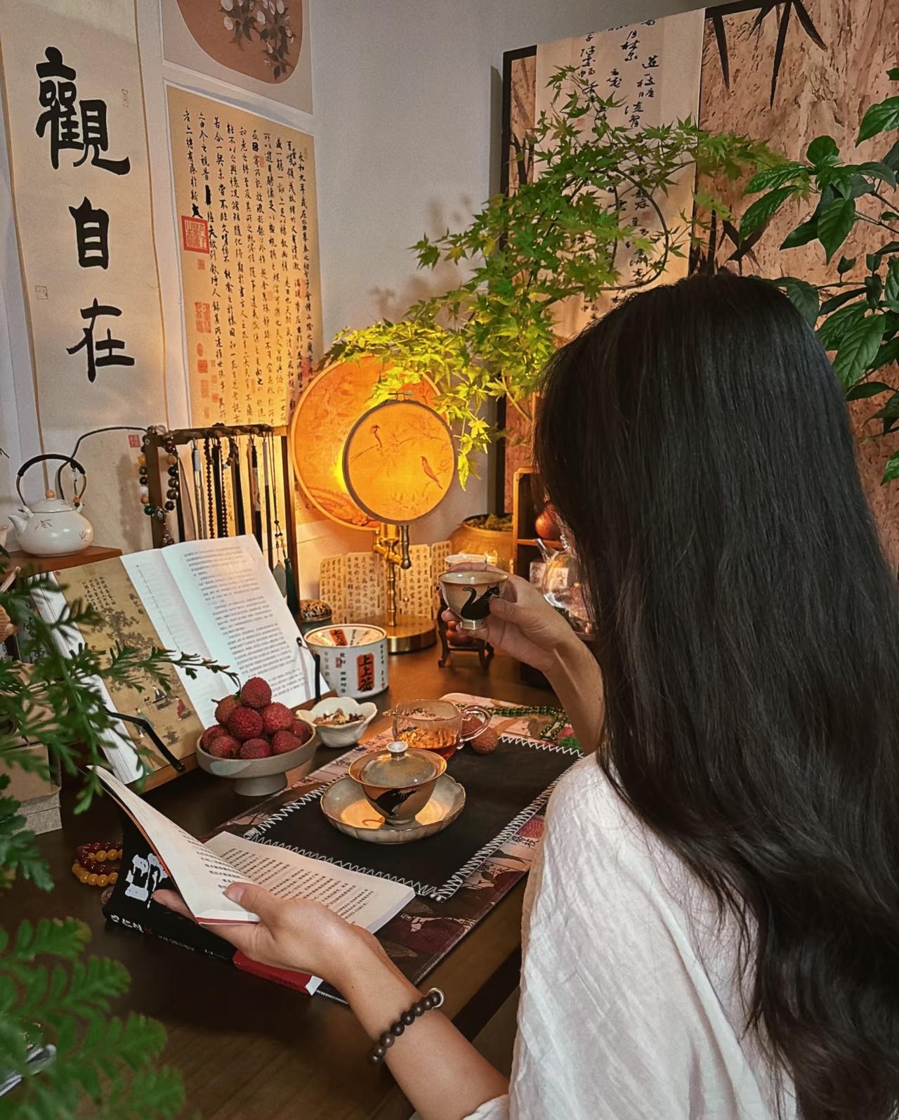 因为喝茶,是一场关于“慢”的修行。从温杯、投茶到出汤,每一个步骤都需耐心与专注。久而久之,这份“慢”会内化为一种从容不迫的生活态度,让人在纷繁复杂的生活中守住内心的节奏,褪去浮躁,沉淀出平和与优雅。 茶席,也是审美的课堂。青瓷的素雅、紫砂的古朴、茶汤的清透,长期浸润在这样的东方美学中,人的审美情趣会在无形中提升。举手投足间的端庄与得体,正是气质的隐形骨架。 更重要的是,茶性养人。茶多酚抗氧化,茶碱提神不倦,长期适量饮用,气色自然通透红润。外在的舒展与内在的清爽相互映衬,便成就了那种“不施粉黛而色益彰”的高级感。 茶如镜,照见更自洽的自己。懂茶的人,往往更能包容生活的多元与不完美,待人接物也因此多了一份松弛与自信。这份由内而外的和谐,才是气质越来越好的真正秘诀。图片源于网络。喝茶技巧 茶品饮方式 喝茶方式 女性喝茶 喝茶中年女人 喝茶女子 品茶女郎
