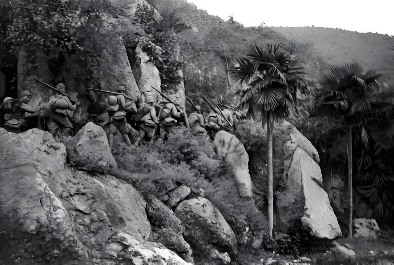 抗战期间(1938年),真实历史影像下的侵华日军! 图一:9月20日,江西九江瑞昌市,日寇坦克正在集结。由于彻底掌握了制空权,其坦克横七竖八、毫无章法地停靠在路边,相当嚣张。 目测倭人坦克相对于同时代苏德,装甲薄如脆皮。却在严重缺乏反坦克武器的中国军队面前如入无人之境。工业基础对于一个国家军力的作用可见一斑。 图二:9月28日,湖北黄石阳新县,鬼子兵们正光着身子在野外洗澡。 真希望这支兽兵小队在接下来的万家岭大捷中被国军团灭。 图三:9月30日,日寇正在江西境内山区行进,图中棕榈树尤未显现,这是鄂赣山区极为常见的树种。 欢迎大家关注本人微信视频号:“历史影像持续更新”! 结语:欢迎朋友们关注、点赞,评论区发表宝贵观点与建议,并将来自己感兴趣的历史事件留言下来。我将尽力搜集资料,整理成篇,与您共勉! 您的慷慨支持是我持续创作更新的永续动力。文中常有时间地点不详或地名无法译出之状况,若您有案可查,请帮忙斧正补充!
