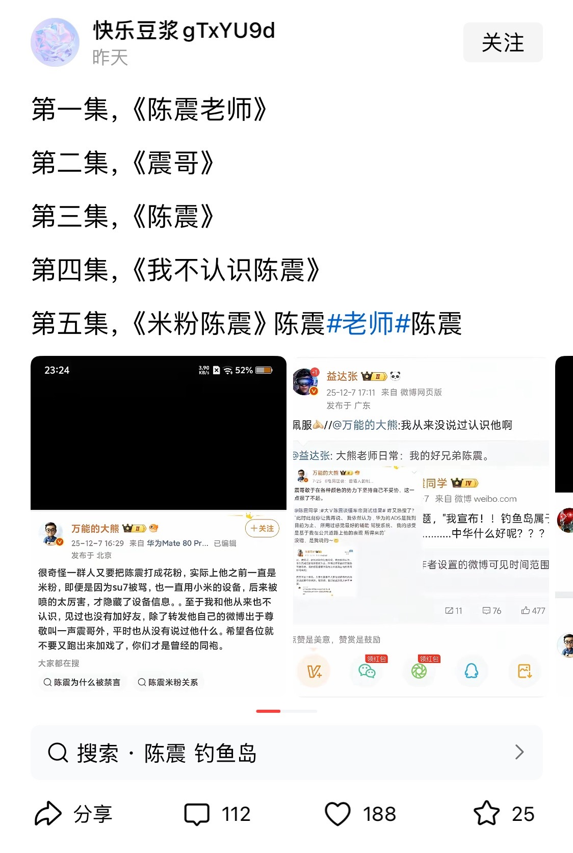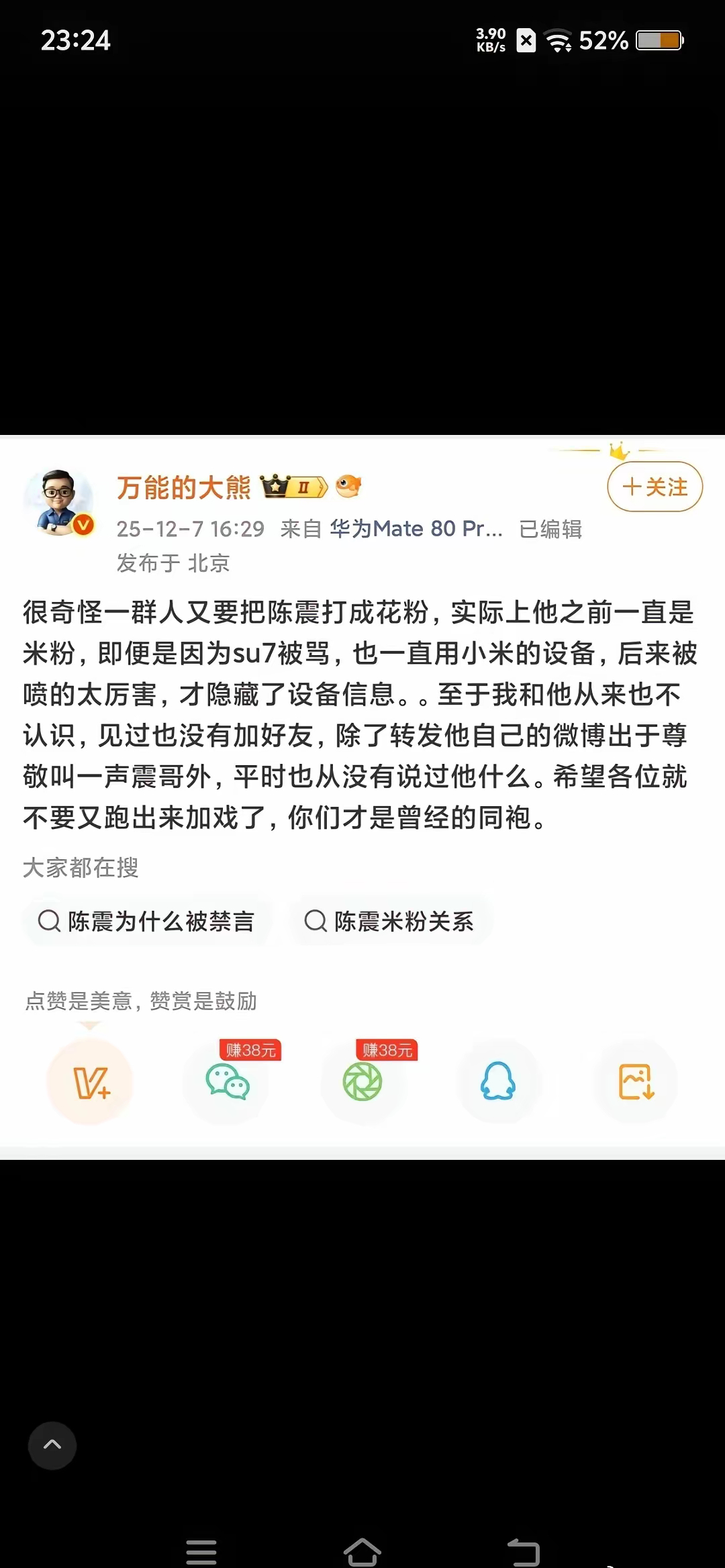 要不是我被陈震拉黑差点就信了