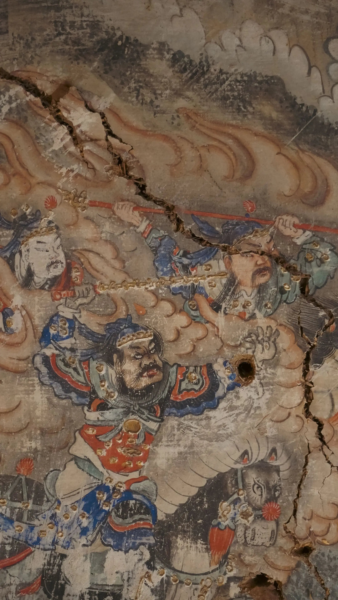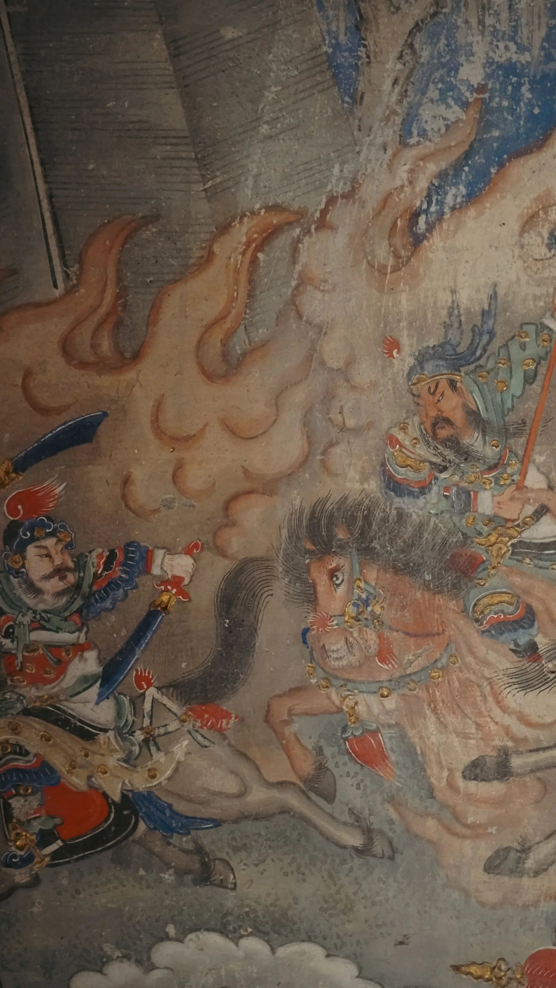 古寺斑驳墙面上,二爷传奇一生在壁画里流淌。从秉烛达旦的夜读,到桃园结义的热血,再到斩将夺关的千里路……每一帧刀光剑影里,都藏着忠义千秋的魂。