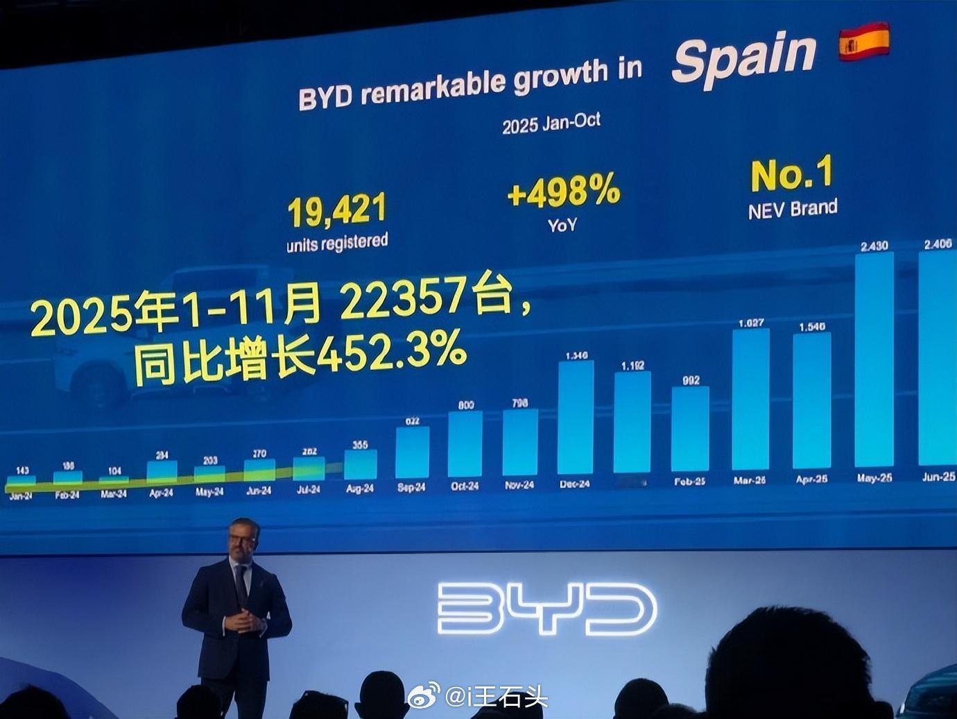 现在海外已成为比亚迪新的增长点。今年前11个月,比亚迪海外销量已突破91万辆,仅11月就卖出超过13万辆,全年海外销量有望突破100万辆。加上国内,目前比亚迪在全球市场卖出的新能源汽车,累计销量已超过1470万辆。比亚迪
