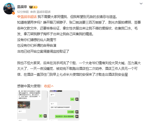 蓝战非称被绑架太可怕了………在绑匪眼中,这就是行走的提款机,说是要300万就够, 蓝战非 iPhone 17 Pro Max iPhone 17 Pro iPhone 17 小西西要超车 2025-12-09