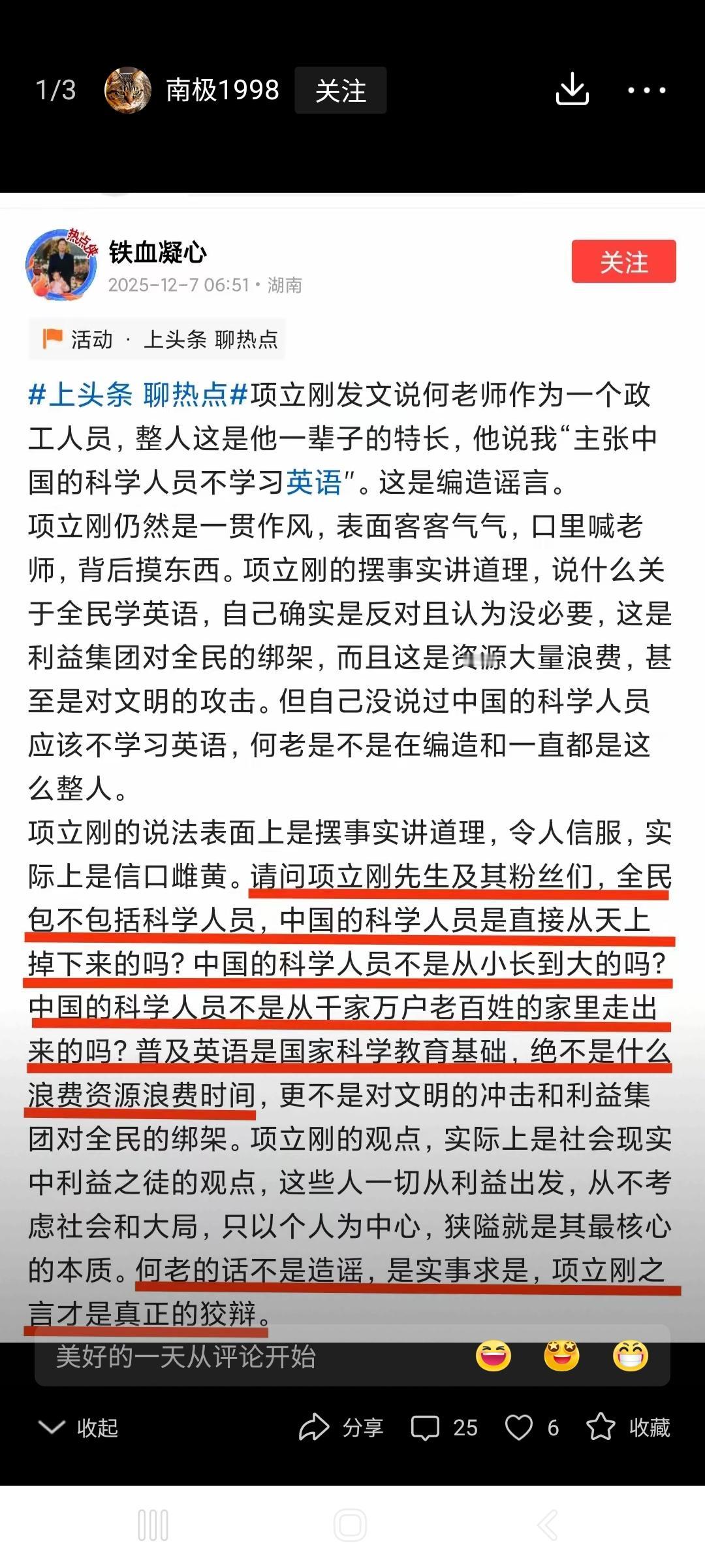我发现项立刚是境外敌对势力,他最怕中国人学好英语。打败西方。
