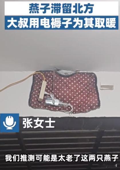 河北,两只“老燕子”无力南飞,留户主家过冬。没想到,户主老两口给两只燕子买了电褥子盖上,每天送新鲜面包虫给它们吃。 往年这个时候,天空中成群的燕子早已南迁,可今年却不同。村头赵老汉家的屋檐下,竟有两只瘦弱的“老燕子”迟迟没能飞走。 它们的羽毛失去往日光泽,翅膀颤颤巍巍,像是随时会被寒风吹落下来。 赵老汉和老伴张大娘注意到这一幕,是在一次清晨。那天,院子薄霜未退,赵老汉推开门时只听“叽”的一声,一只燕子从屋檐下跌落,匆忙扑腾,又无力地停在地上。 另一只也紧跟着掉下来,扑扇两下便不动了,只是瑟缩着身子。 张大娘急忙弯腰,把两只燕子捧起来放进怀里,只觉得凉得渗手。“这是不能飞了呀。”她轻声说。 按理说,村里老人都懂:迁徙失败的燕子,多半熬不过冬天。 但老两口看着这对小生命,不忍心任其消亡。于是他们捡来废木板,在屋里角落给燕子搭了个小窝,垫上干草,再盖上一层干净的旧布。 可夜里温度骤降,屋里仍冷得刺骨。张大娘躺在炕上总睡不踏实,反复醒来听那两声微弱的叫唤,心里揪得很。 第二天一大早,她悄悄去镇上买了一件“稀罕物”——一个小号电褥子。 回家后,她把电褥子摊在小窝下面,又在上头盖了层软布,让燕子窝像个微型暖炕似的。“不能让它们冻着。”她嘴里念叨着,像照顾两个小孩子。 赵老汉则负责解决燕子的吃饭问题。燕子不吃米不吃面,只吃虫子。冬天虫子可难找,他便到镇上问,后来在一家宠物店里买到了新鲜的面包虫。 店员听他说是给燕子吃的,还愣了好一会儿。赵老汉大手一挥:“小东西要活命,也得吃好!” 这两只燕子像是听懂了,也慢慢恢复了精神。起初,它们缩在窝里不敢动,只是虚弱地张嘴。 过几天后,它们会在窝边跳来跳去,看到赵老汉端着虫子过来,还会轻轻“啾”一声,像打招呼似的。 天气愈加寒冷,窗外的树枝再没一片叶子。屋里却暖意融融。老两口吃饭的时候,也会时不时扭头看看那两只燕子。 张大娘笑说:“这俩小家伙,算是咱家的‘冬客’了。”赵老汉也乐:“来了就来了,来都来了,我们还能不管?” 村子不大,消息传得快。邻居来串门,看见电褥子伺候着两只燕子,惊得嘴都合不上。“可真是稀奇事!”有人感叹。 后来村里一个年轻人把这件事拍成视频发到网上,一下子就火了。评论里一片惊叹:“燕子遇到好人家了!” “老人与老燕,彼此守望,太暖心了!”“这样的善意值得被看见。” 也有人留言说,燕子是候鸟,不适合人工饲养,担心它们明年飞不动。 赵老汉听后认真盘账:等春暖花开,他会把小窝搬到院子里,让燕子适应气温,再慢慢鼓励它们飞。他说得朴实:“咱这不是要圈着它们,就是帮它们渡过难关。” 时间一点点过去,燕子在暖窝里越养越精神。一个阳光明亮的午后,它们竟扑腾着飞上了房梁,在屋里绕了两圈。 老两口对视一笑,那笑里有惊喜、有心疼,也有一种默契般的满足——他们知道,生命有时需要帮助,但最终还是会朝自己的方向飞去。 外头的风依旧冷,可屋里那两声清脆的啾鸣,却像提前到来的春天。