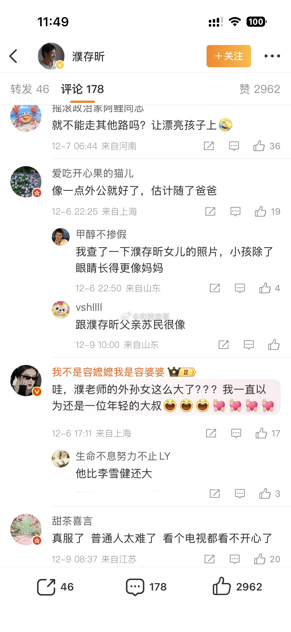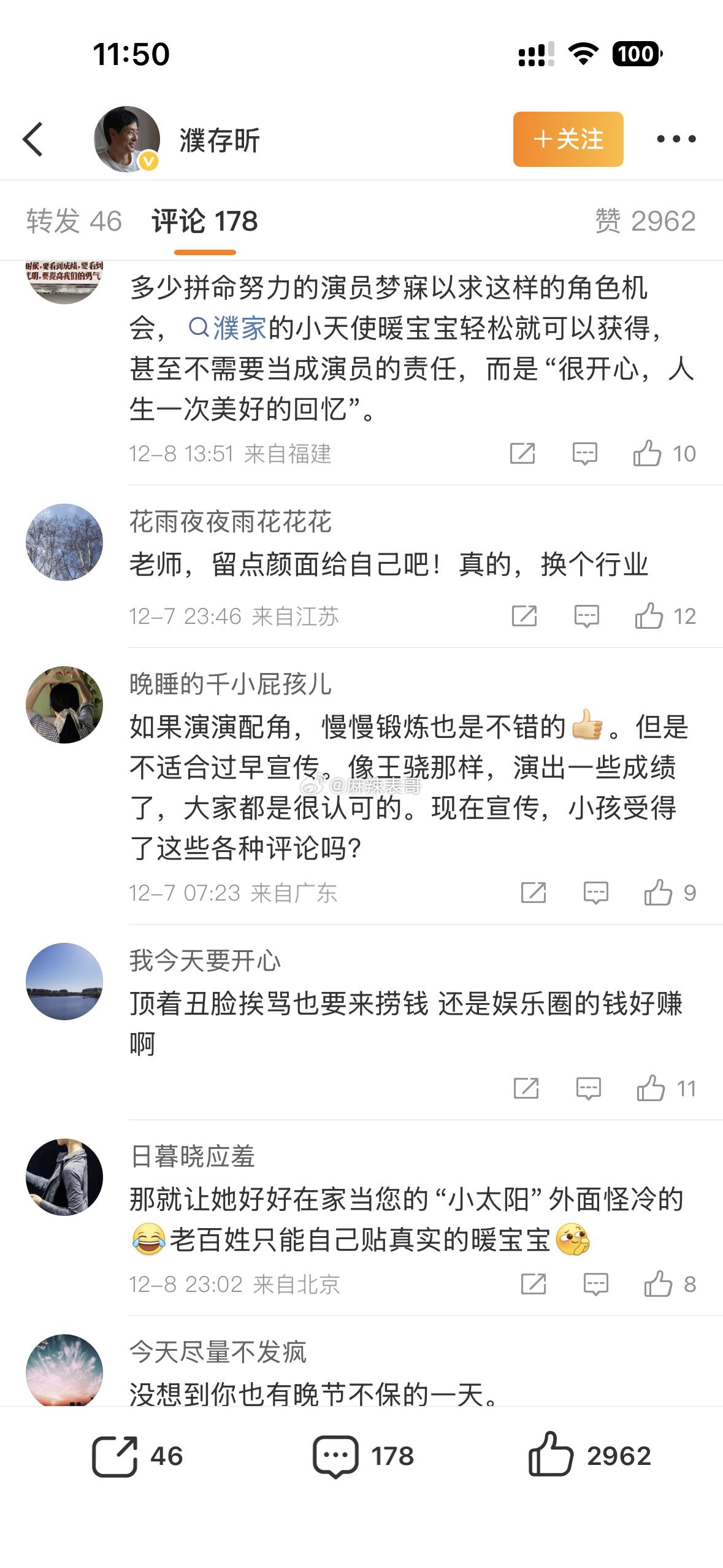12月9日,濮存昕分享外孙女出演的短剧!网友留言过于直白,“这也太难看了!”