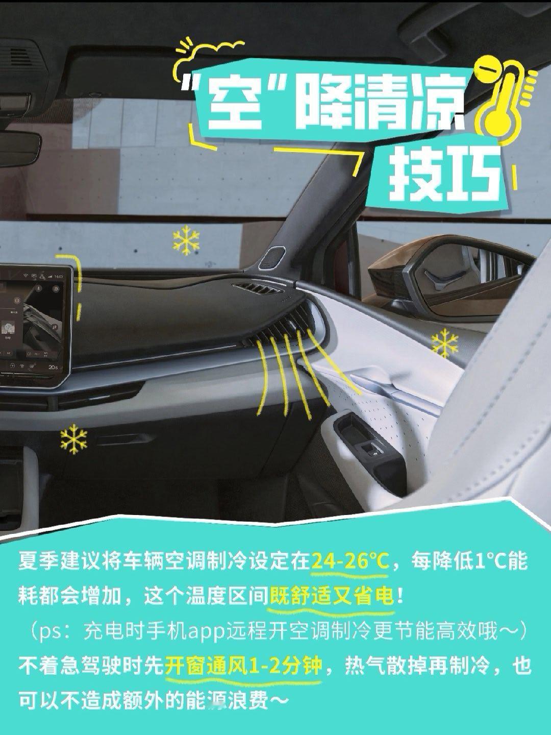 贝贝们新能源车🚗省电🔋攻略来啦💪“黄金右脚”别猛踩平稳起步、避免急刹急启,省电还护车夏季制冷24-26℃,舒适又节能后备箱别堆杂物,高速拆行李架,给车“减重”~充一次电行驶里程更远轻松拿捏节能驾驶每一个操作都在省电🔋!友友们学起来~有什么别的小技巧也可以分享一下汽车大v聊车