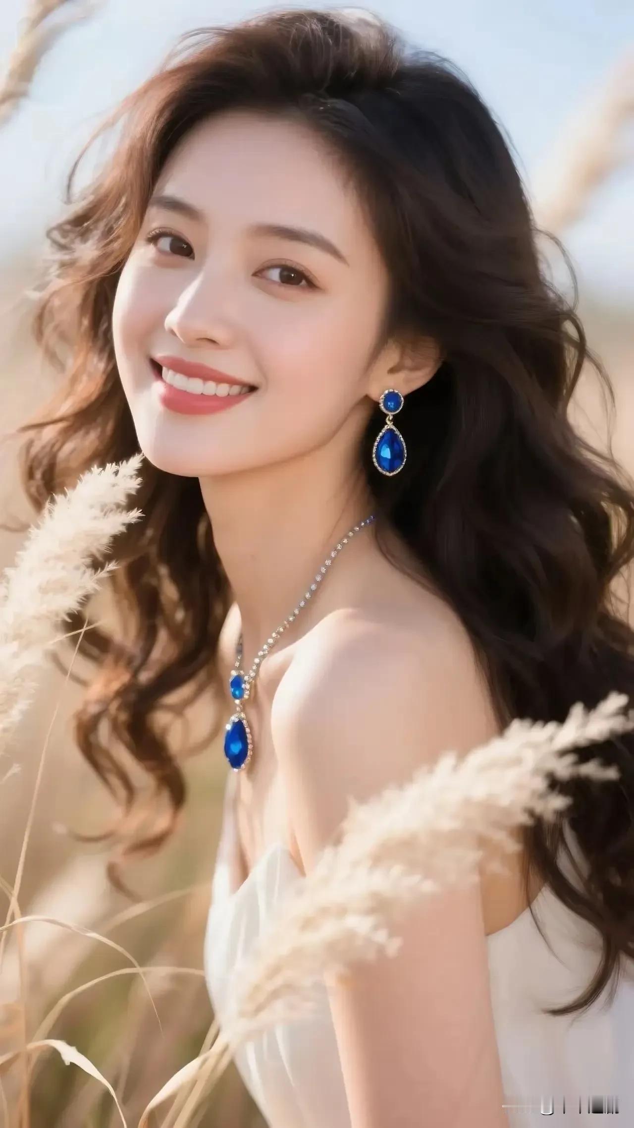 秋光把苇絮揉得松软,颈间耳侧的蓝钻,是风从海面衔来的星。白裙裹着暖调的风,笑意比芦花更先漫进眼底。 温柔感美女 温柔气质美女