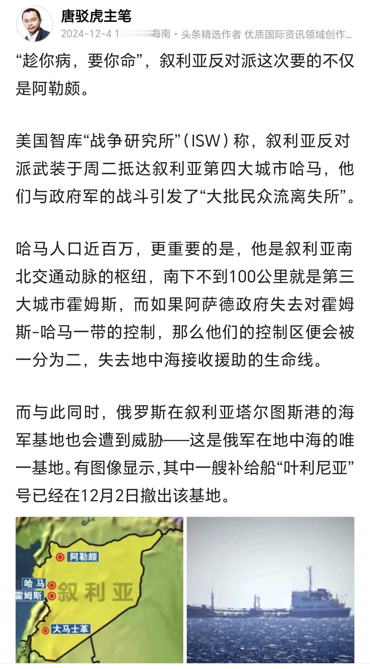 4号的时候我就已经感到并告知,阿萨德有可能顶不住了,“叛军”势如破竹。而你@朴素的爱国者 呢,我的朋友,你在说我危言耸听,可是四天之后呢?