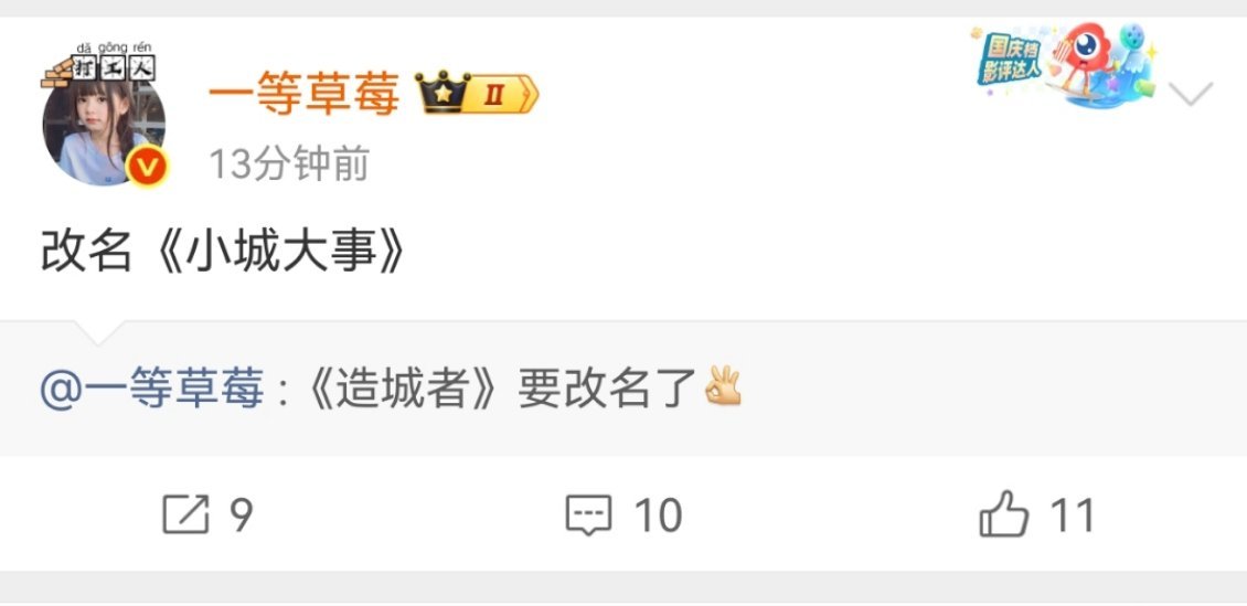 《造城者》改名《小城大事》,还行,比另一部 低智商犯罪 改成 擒贼记 好听一点