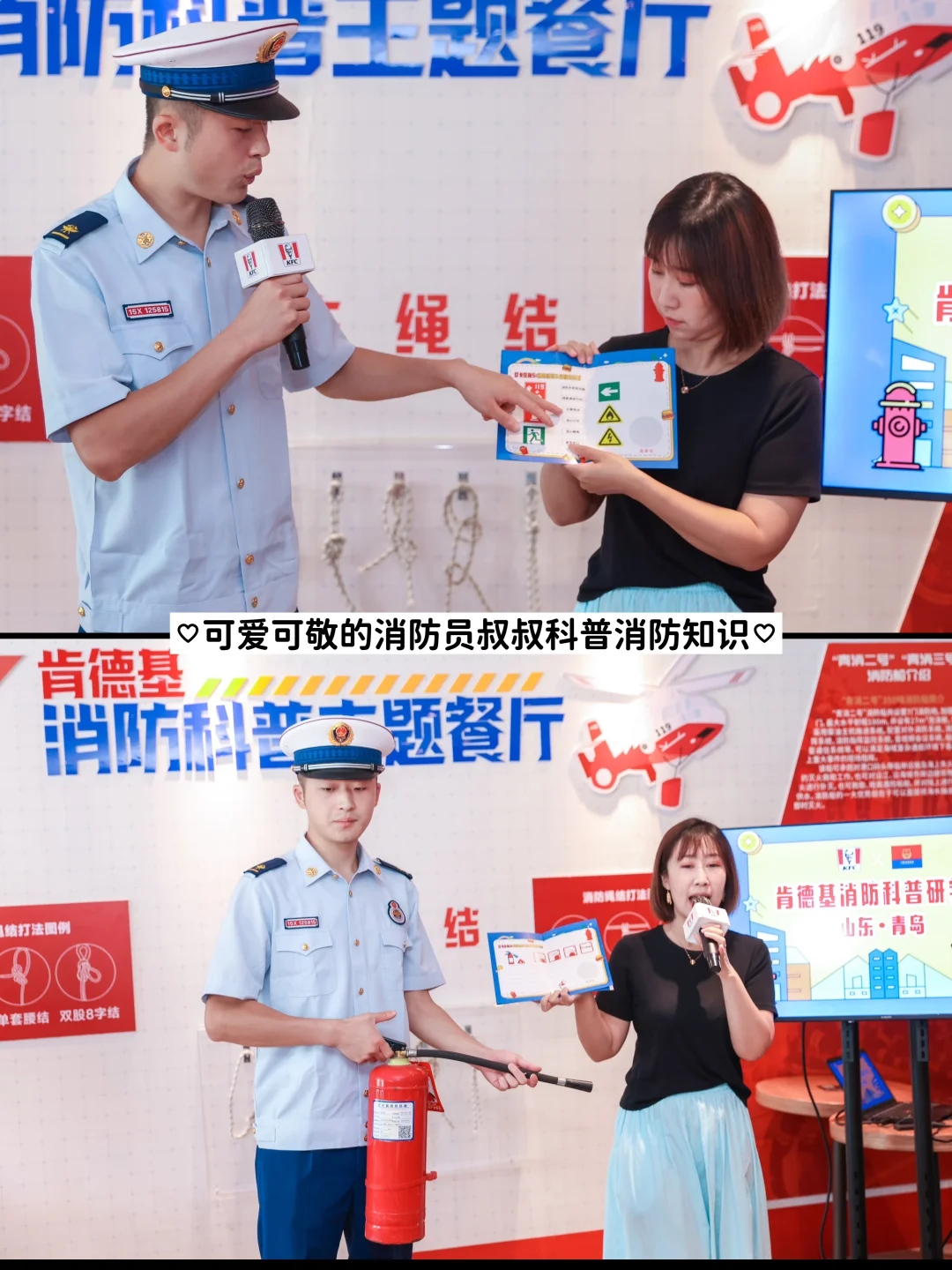青岛最近太热啦 去不了大户外 就带小朋友室内涨知识啦 . 周末我们参加了一场有意义的消防研学活动 寓教于乐 在整体设计都跟消防有关的肯德基消防科普主题餐厅内,童趣和消防知识相融合,体验感满满,大家在用餐的时候就可以顺便学习一些消防知识啦 . 🌈划重点❗❗参加方式是免费的哦 . 这半天的活动全是我们平时接触不到的知识盲区,大朋友小朋友一起学习,牢记消防安全,遇到危险也能保护好自己的安全