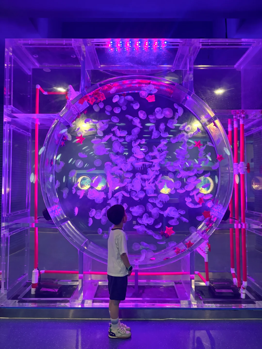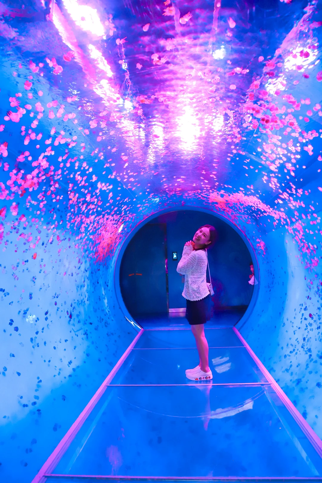 🔵我们先去深海奇幻,去360°梦幻水母隧道,梦幻又美好,这里有五颜六色的水母,有着美好的美人鱼传说,记得看好当天表演时间哦