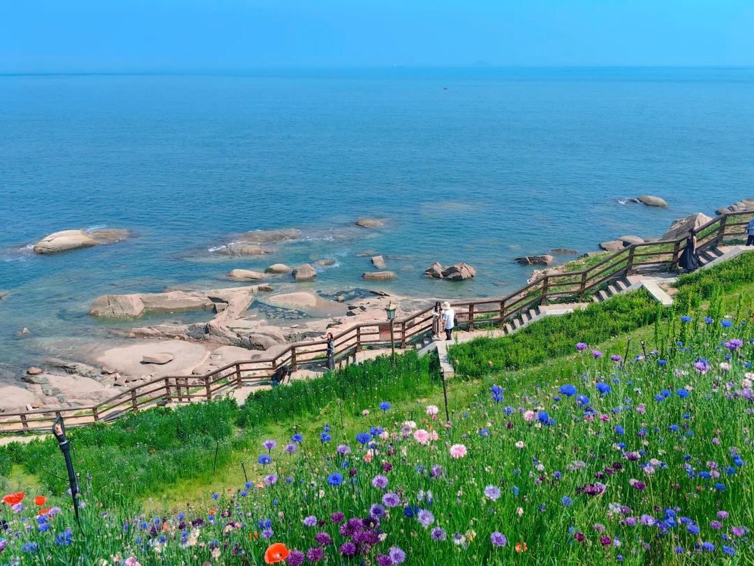 今天中午路过燕儿岛 海边的花儿们都开啦 真的超美 人也不多 快来青岛看海呀