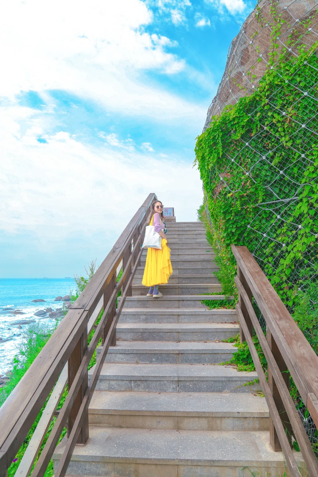 👉燕儿岛的木栈道楼梯,超级出片,机位在楼梯斜对面上方,拍木栈道正侧方更好看哦