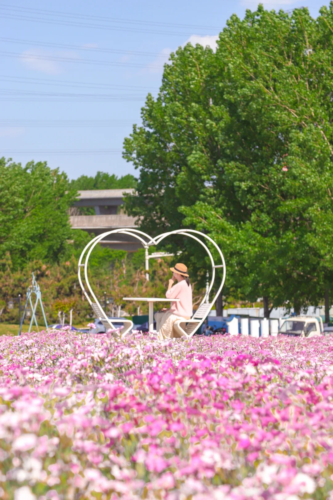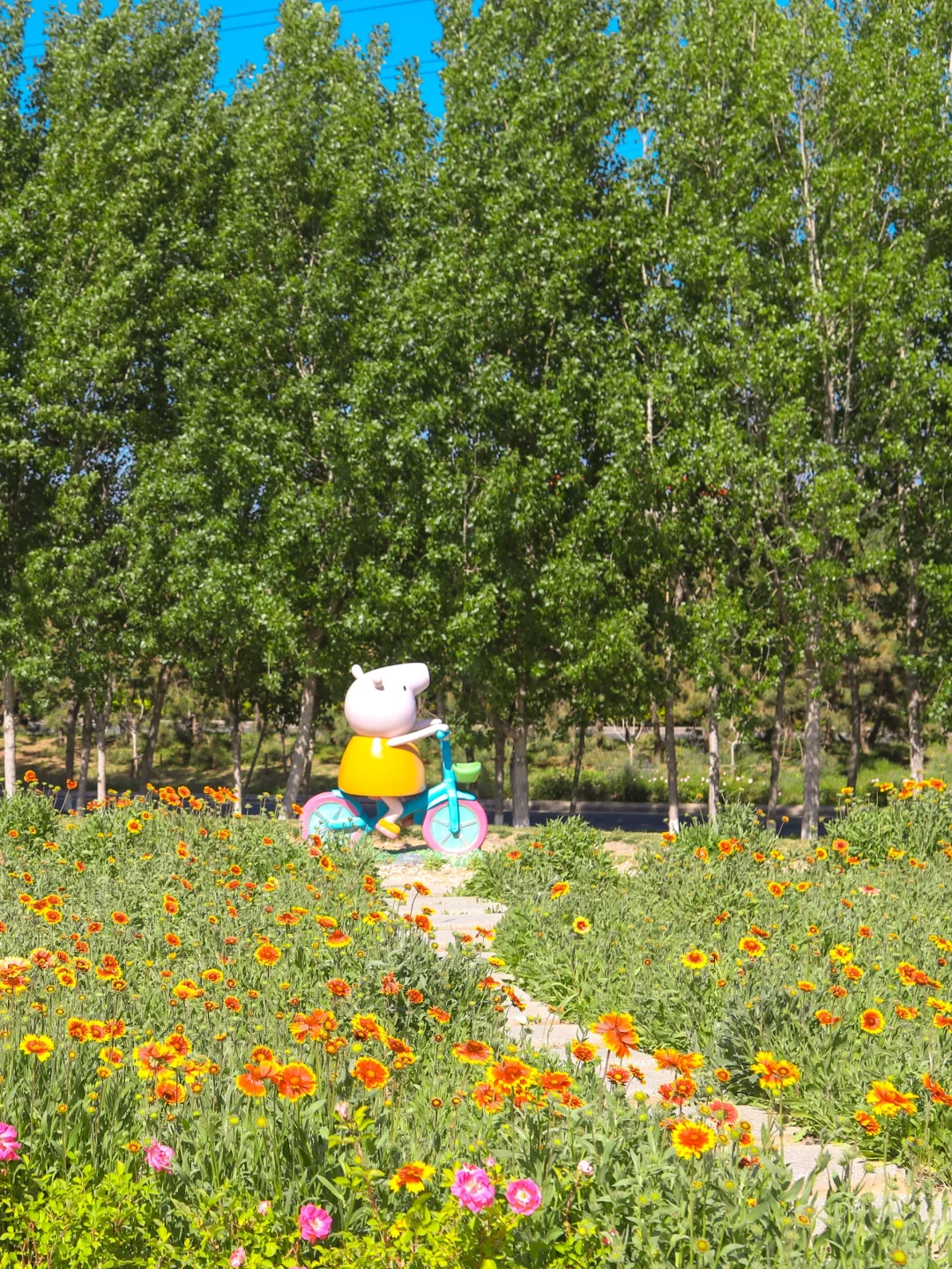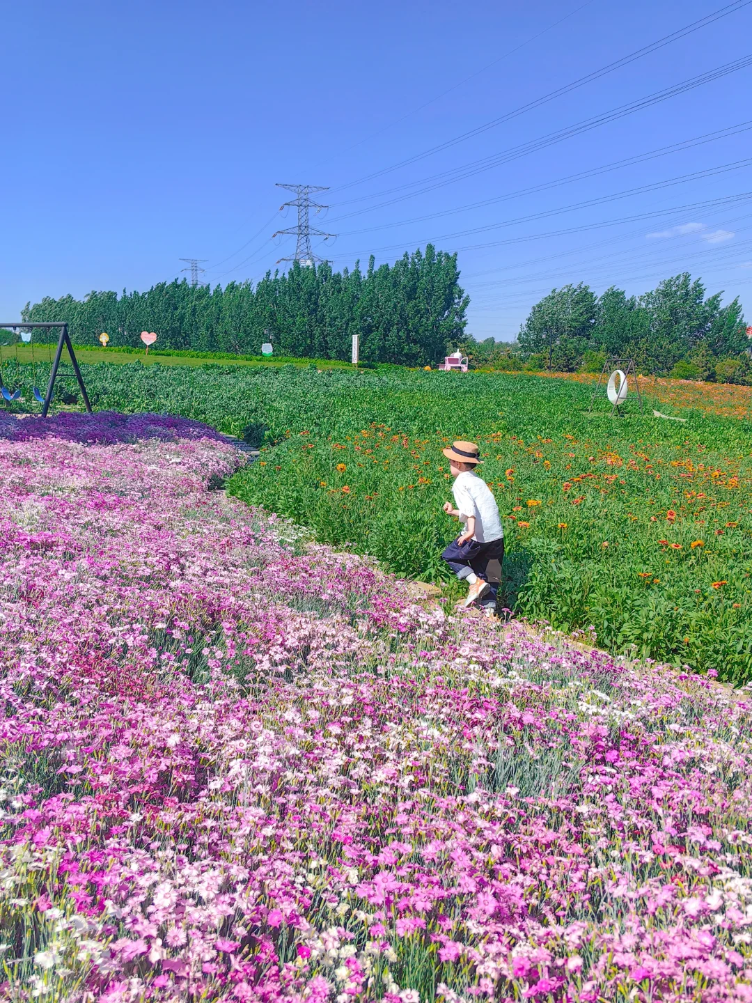 浪漫生活的记录者 青岛好玩有好看的公园 在这里 花海➕游乐场 . 🌳青岛宁城路和文阳路路口,车停在路边 👉一整片的花海,芝樱花➕小雏菊➕马鞭草➕虞美人,很多花还没有盛开,所以花期预计很长 👉小型游乐场,滑梯➕秋千➕转盘➕跷跷板,小朋友在这里顶着太阳玩了中午,唯一的缺点就是没有遮阴的地方 👉建议下午去光线比较柔和,也没那么晒哦 👉附近就是白沙河运动公园,2公里左右,很近,可以一并打卡