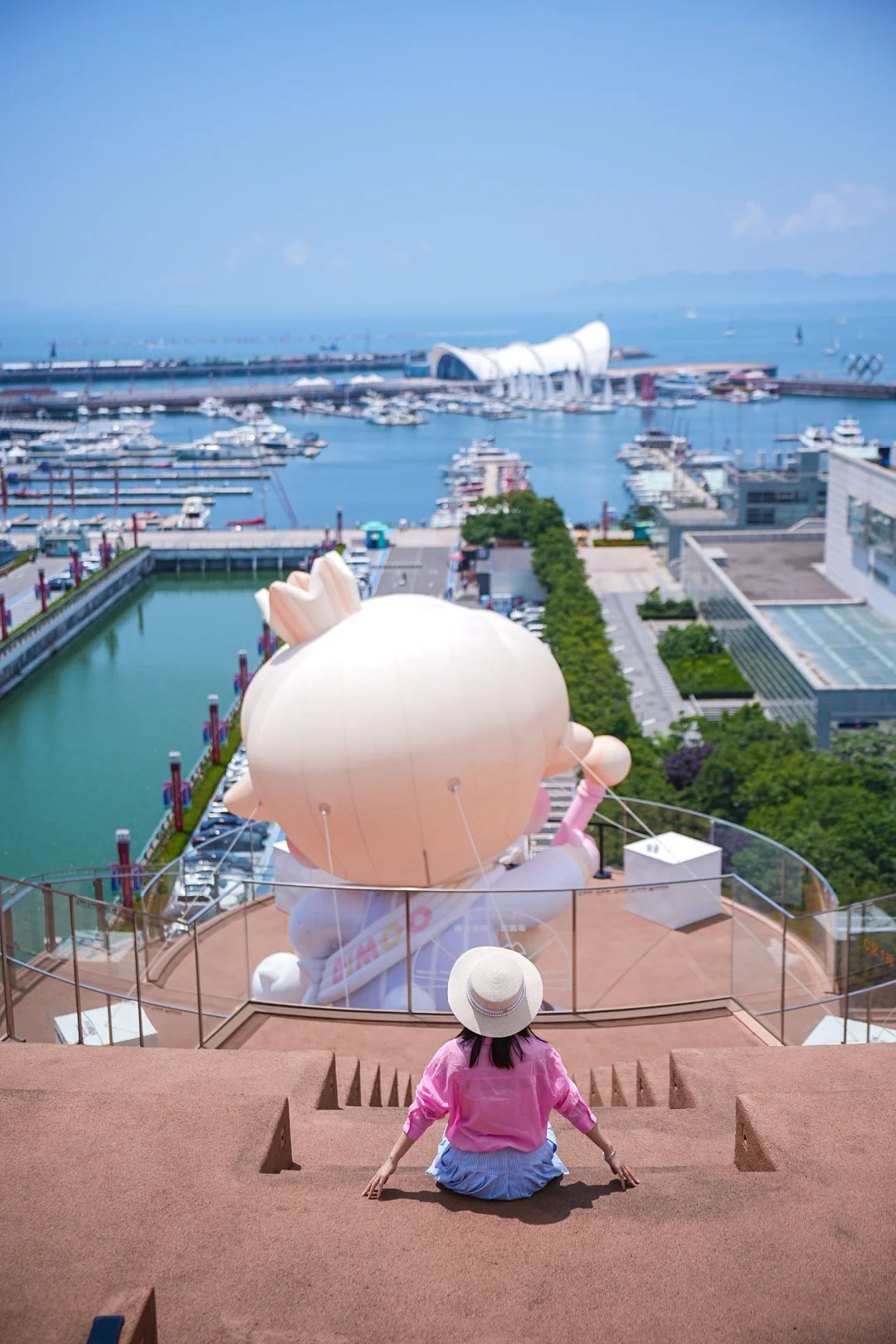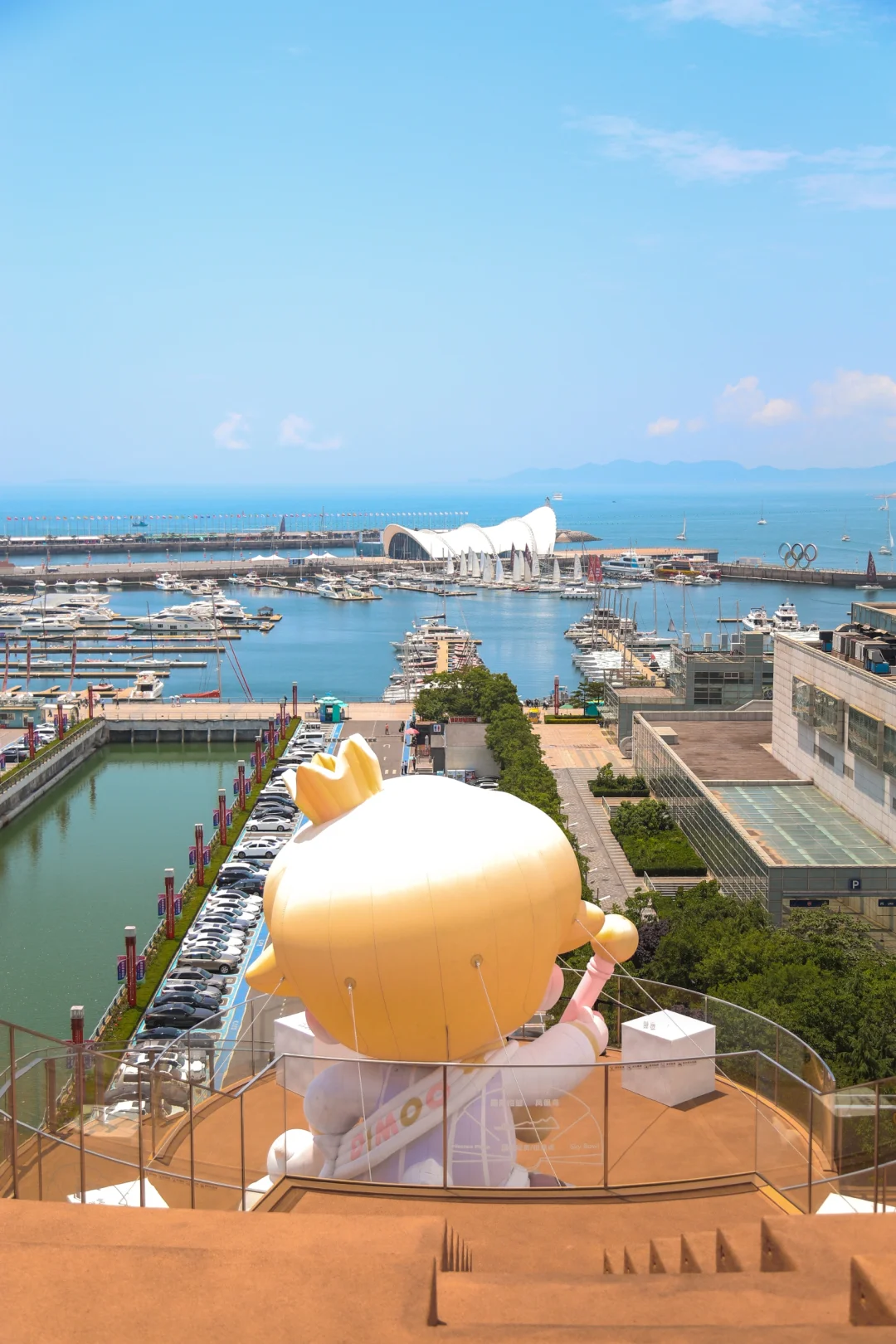 青岛的好天气一定要贯穿整个端午节假期呀 中午和朋友路过海边 顺便看看传说中一个亿打造的看海地标 · 后悔了,怎么才来这么好看的海景打卡地 奥帆中心,五四广场一览无遗 记得等一场日落,看一次岛城的夜景 还有巨型DIMOO,也太可爱太出片了吧 . 喜欢宠物的朋友们,端午期间还可以来宠物市集溜溜,加上乐队演出,氛围感瞬间拉满 📍海信广场5️⃣楼玻璃花园直接进入或者4️⃣楼咖啡店上去,0元直接进
