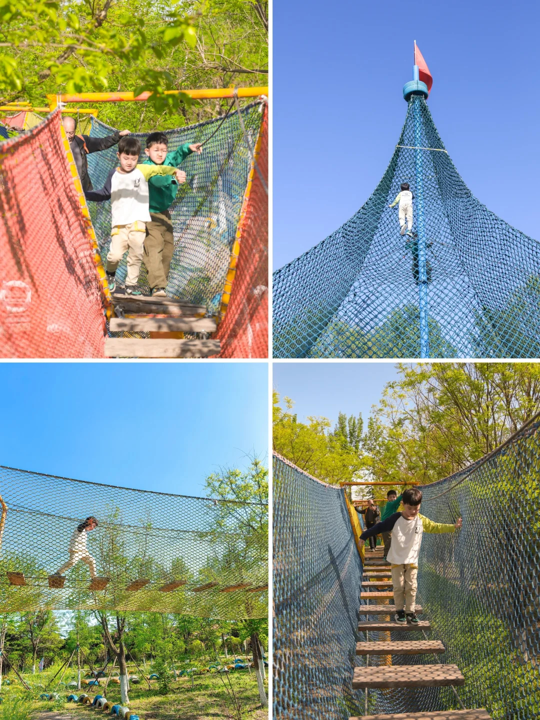 👉园区的树林间穿梭迷宫,攀爬,小朋友们释放电力的绝佳方式