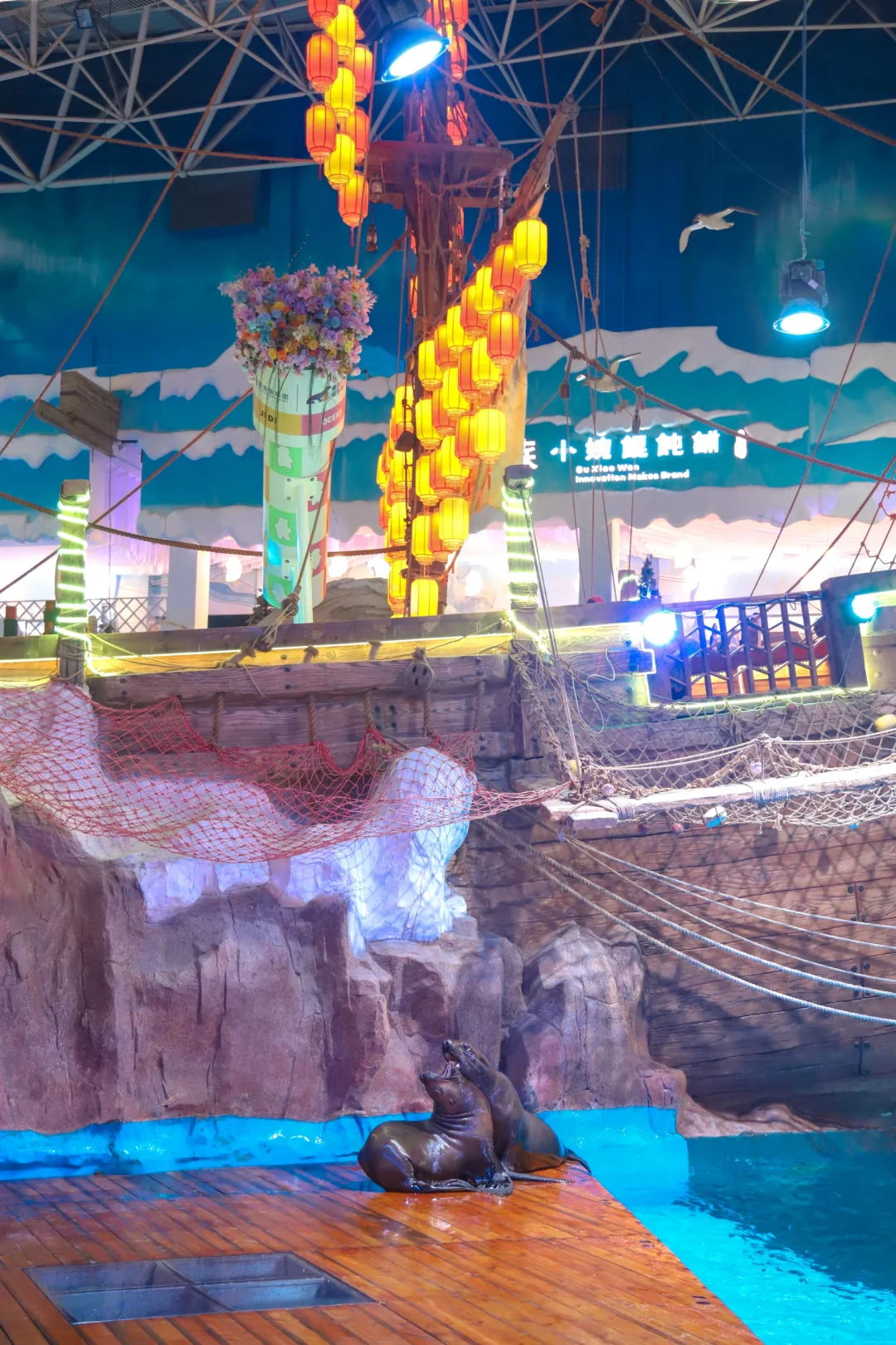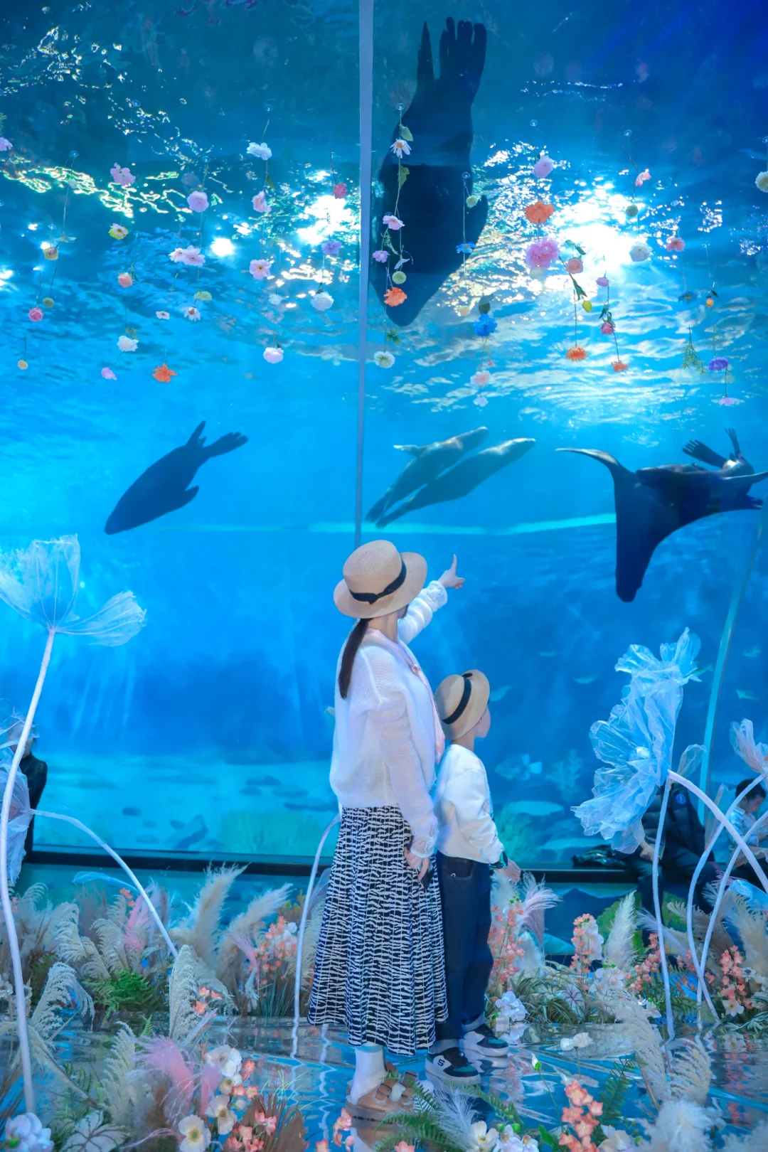 👉旁边就是海底隧道花廊,头顶是游来游去的海豹们,超梦幻