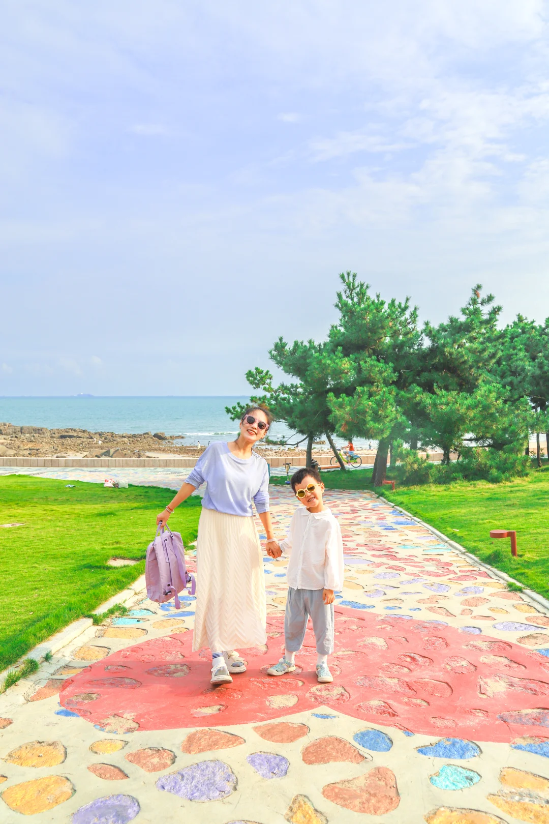 2️⃣海之恋公园,从小麦岛沿着海边木栈道步行16分钟左右即可达到,这里小朋友们可以赶海,挖沙,人特别少,是本地人常来遛弯的海边