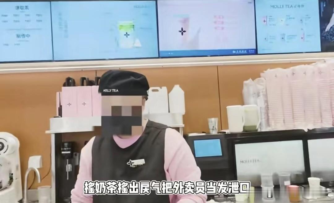 奶茶店店员摇奶茶摇出火气,把外卖骑手当出气筒 最近奶茶店一店员摇奶茶摇出一肚子戾气,居然把外卖骑手当发泄口,出餐15分钟不打包,就让骑手干等着。 事情是这样的,骑手去奶茶店取餐,到店发现商家都点了出餐了,还在那儿拼命摇奶茶。骑手等了十分钟忍不住问,店员居然说“出餐了没空装,你等着”。 骑手就纳闷了,出餐了咋不给装?店员不耐烦怼“我后背要是长手肯定给你装”。骑手说“你忙我来装”,店员又嘲讽“你会装吗?”。骑手一听这阴阳怪气的,回怼“这活很难吗?” 这下店员可找到发泄口了,开始连环怼:“你来做我不拦着,罚钱罚你的还是罚我的?” 其他同行都看不下去,帮骑手说话。骑手不想计较,好言好语沟通,店员还是尖酸得很。骑手彻底爆发:“出餐了为啥不给装?!” 路人还劝骑手“等着就好”,把骑手气得更狠。店员看有人帮腔,还叫嚣让骑手别走。最绝的是店长,居然出面帮店员,说自家店员没问题,是骑手故意找事,还不让骑手走。 这事儿你们怎么看?